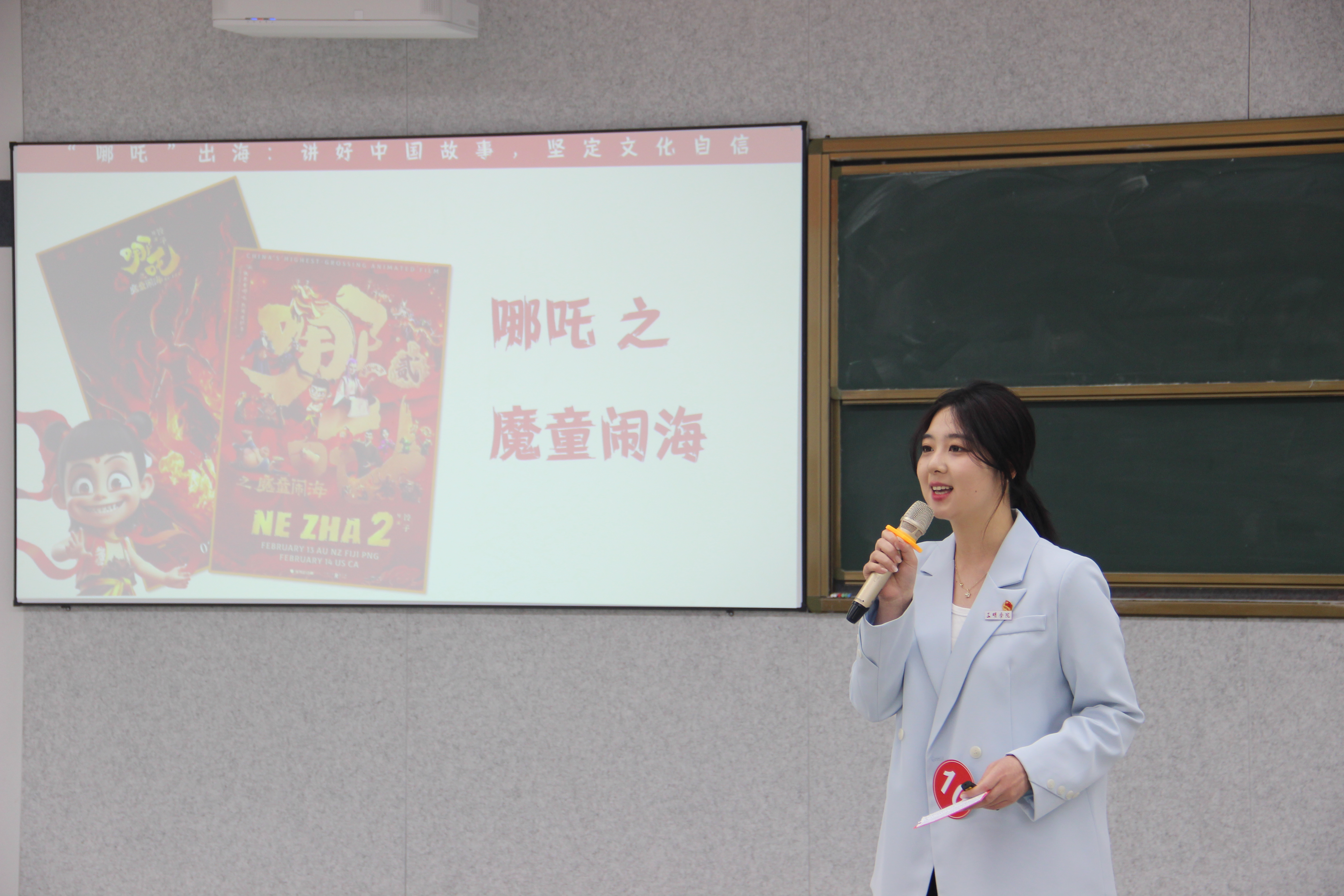 选手以《哪 2》与《逃出大英博物馆》为切口,在动画神兽展翅的勇气与文物“回家”的渴望中架起古今桥梁:“让历史伤痕成为创新的养分,这是我们这代人的文化使命。”这样的“破圈”表达,正是本届大赛的鲜明特色。团员青年们通过角色扮演、影视片段、情景演绎等多元形式,构建起“沉浸式体验+艺术性表达”的全新范式,打破传统课堂的单向灌输模式,化身“理论主讲人”。