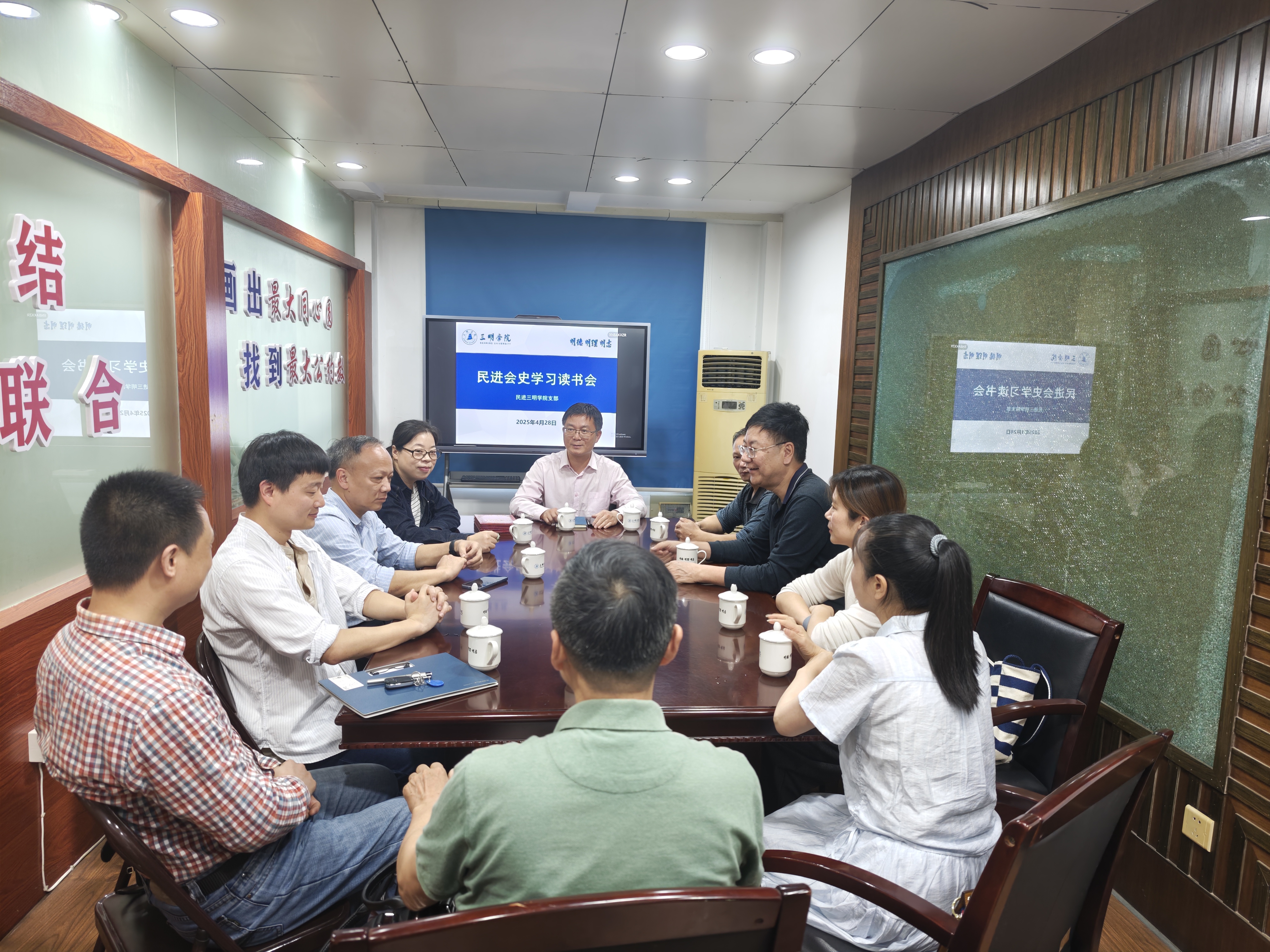 4月28日,民进yl6809永利官网支部在校党派活动室举行民进会史学习读书会,民进福建省委会常委、yl6809永利官网副校长陈日清出席读书会。
