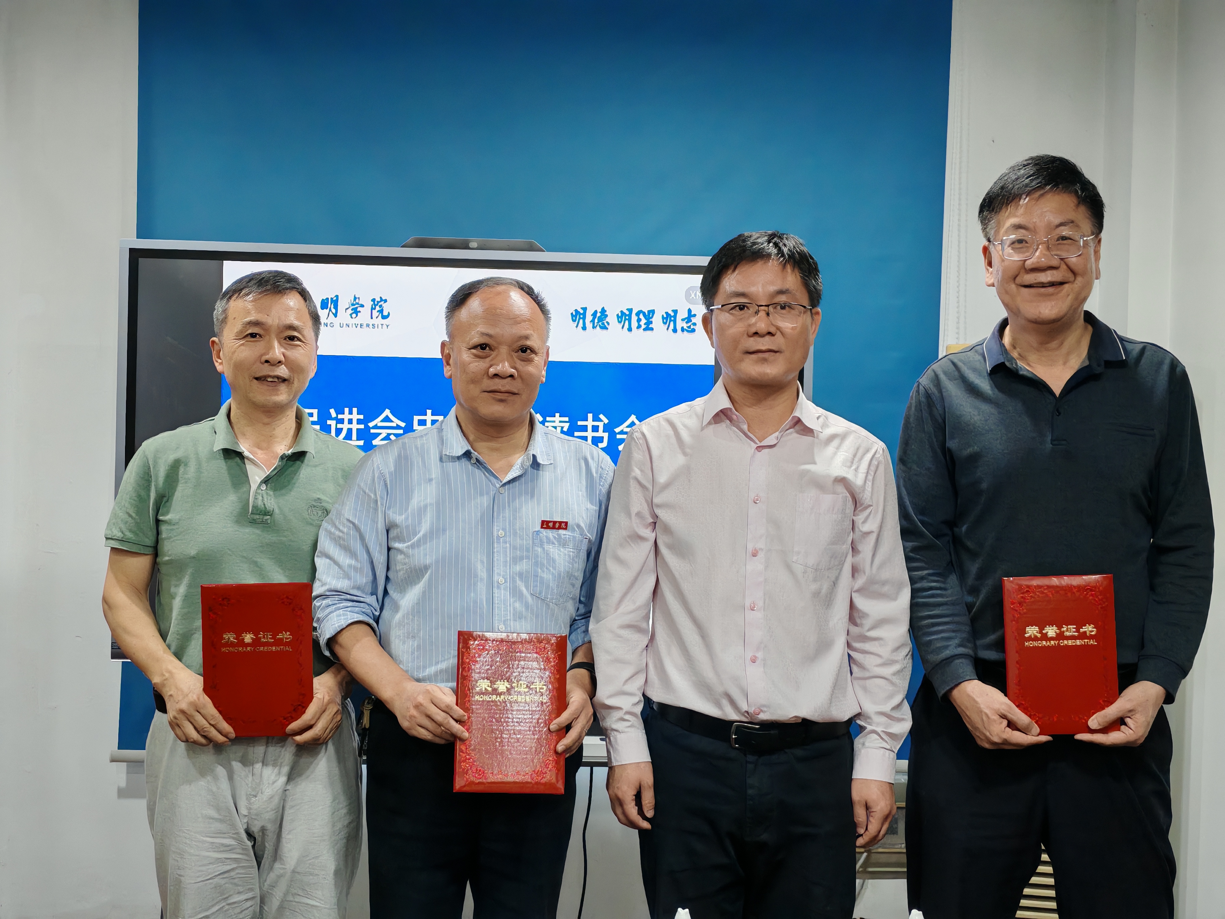 读书会期间,陈日清为支部近期退休的几位会员颁发了荣誉证书,并希望他们一如既往心系民进,常回“家”看看,继续为支部发展贡献力量。