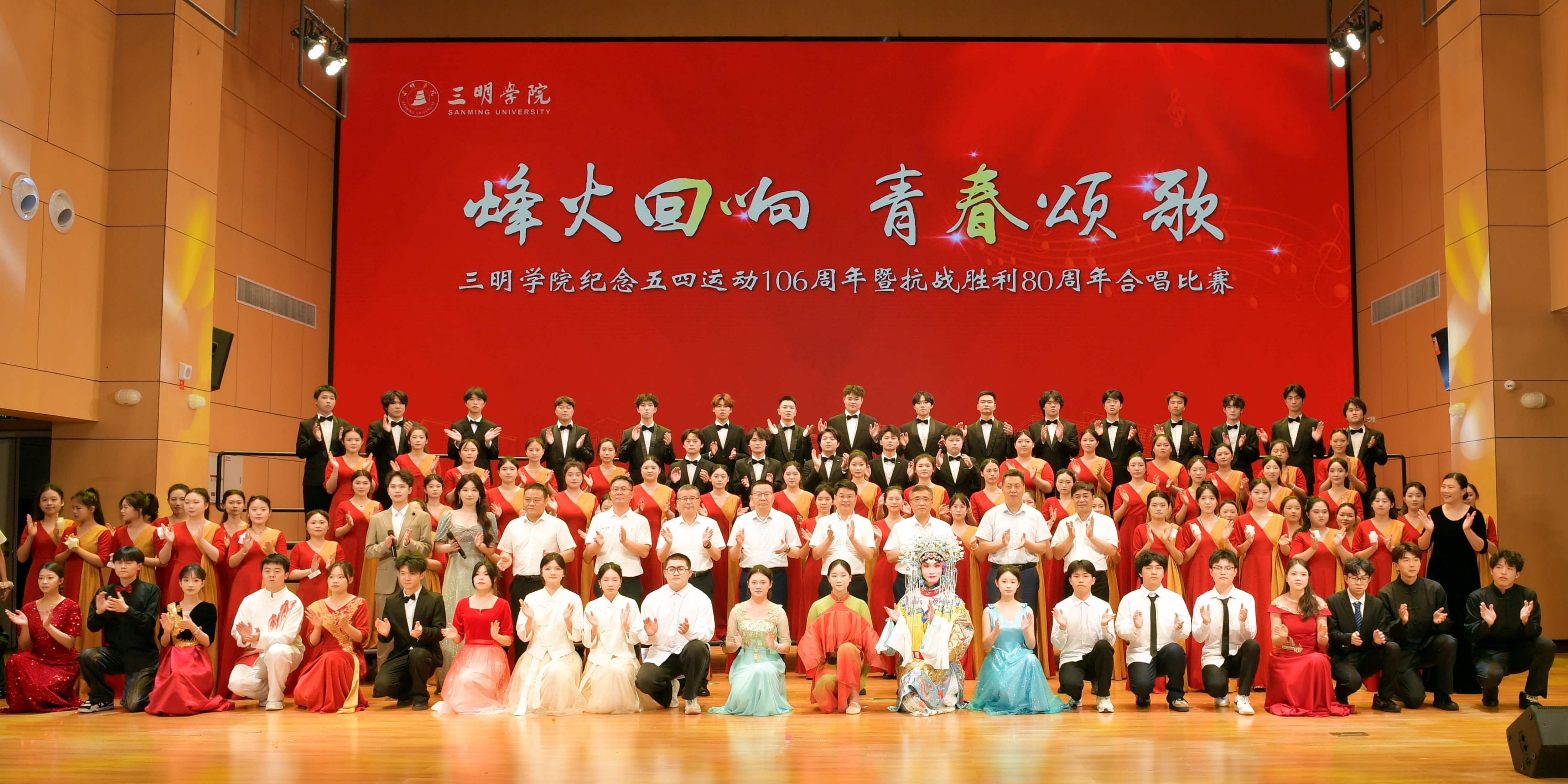 5月12日晚,“烽火回响,青春颂歌”yl6809永利官网纪念五四运动106周年暨抗战胜利80周年合唱比赛(非专业组)在艺术楼音乐厅隆重上演。全体在家校领导、特邀嘉宾三明团市委书记吴晓文出席活动,各职能部门、二级学院党政负责人与师生代表们齐聚一堂,共享这场声入人心的音乐盛宴。
