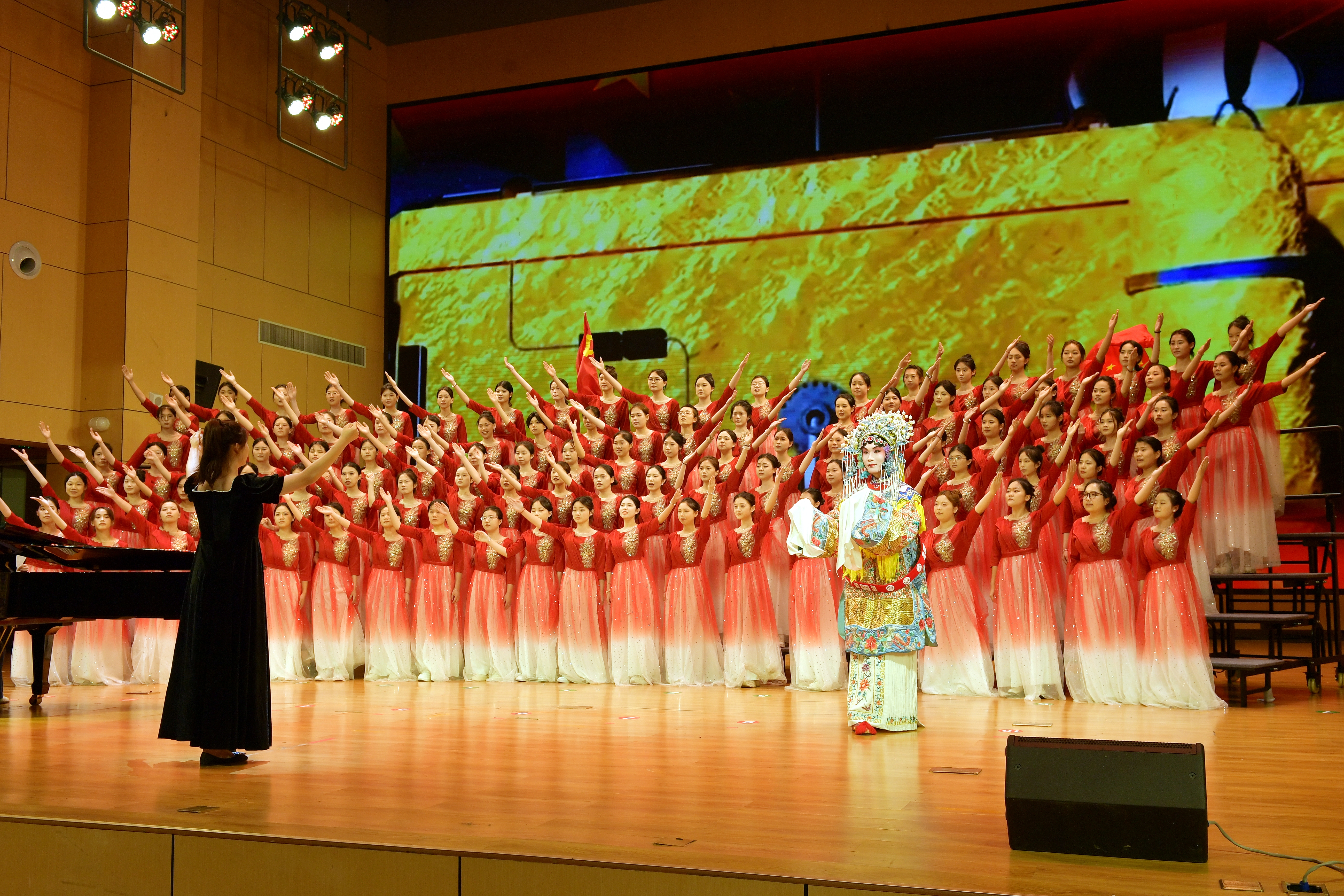 比赛现场高潮迭起,掌声喝彩不断。《黄河船夫曲》《南泥湾》《唱支山歌给党听》《大江东去》《不忘初心》……一首首耳熟能详的经典歌曲化作跳动的音符,唤起了全场观众的红色记忆。朗诵、舞蹈、中华武术、情景剧、戏曲等表现形式与合唱的巧妙结合,融教育性、艺术性、欣赏性于一体,让灯光熠熠的舞台成为思政课的讲台,让余音绕梁的音乐厅化身启智润心的思政课堂。
