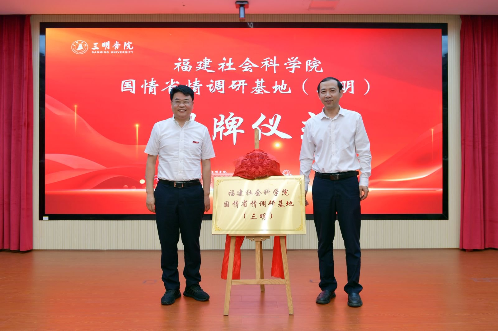 5月12日上午,“福建社科院国情省情调研基地(三明)”揭牌仪式在三明学院举行。福建社会科学院党组成员、副院长吴肇光,三明学院党委书记陈列平、副校长陈日清,科技处(社科处)、宣传部,文科学院师生代表参加了活动。