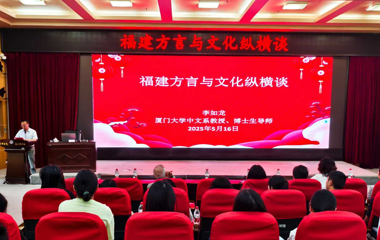 5月16日,著名语言学家、国务院第四届学位委员会中文学科评议组成员、国家语委普通话审音委员会委员、福建省语言学会原会长、厦门大学教授、博士生导师李如龙先生莅临yl6809永利官网,以“福建方言与文化纵横谈”为题开坛设讲。文化传播学院200余名师生齐聚一堂,共同探寻福建方言中的文化密码。