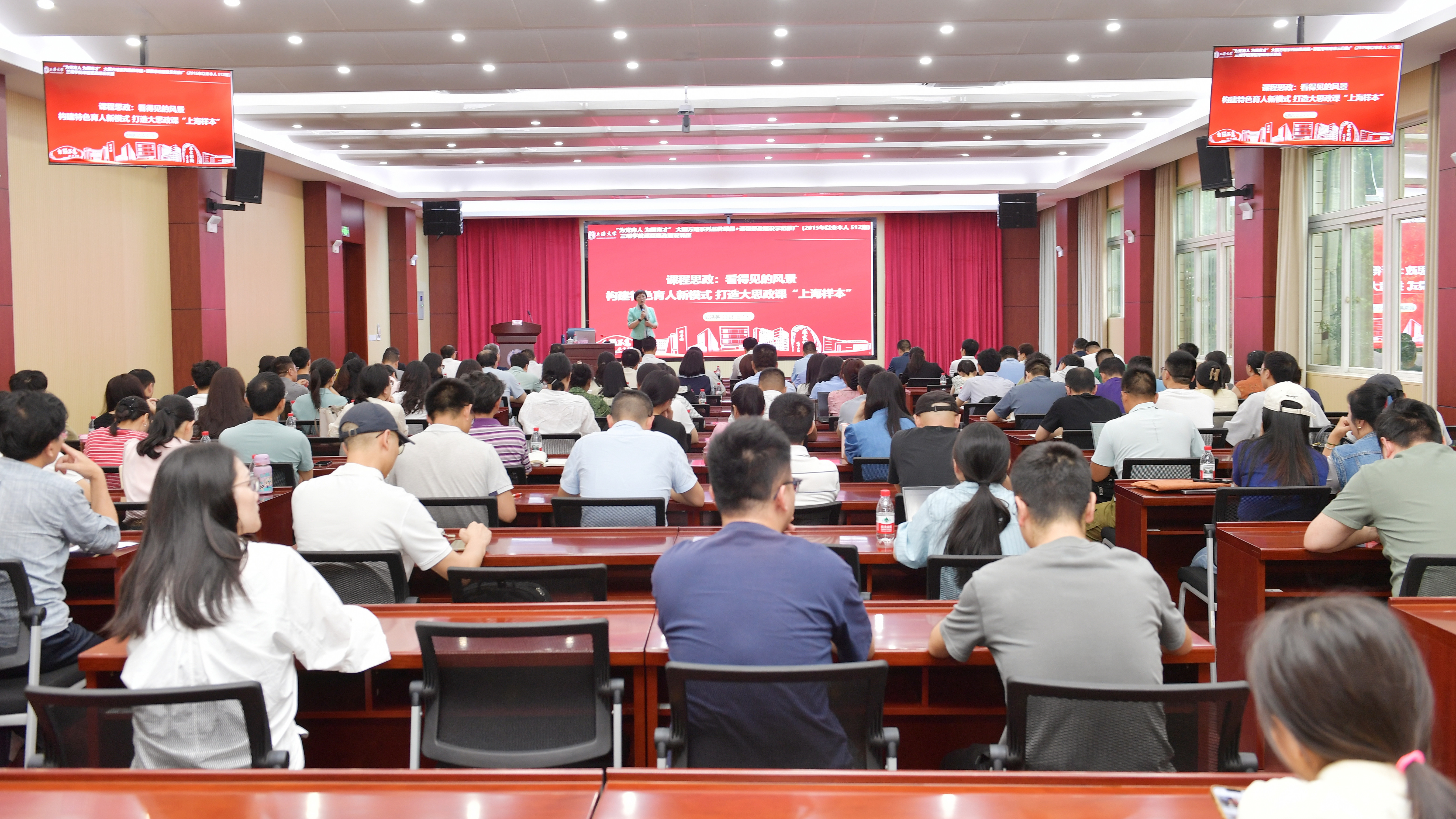 在专题培训中,顾教授以《课程思政:看得见的风景--构建特色育人新模式 打造大思政课“上海样本”》为题,分享了课程思政建设的“12344”体系构建之路,从课程思政的顶层设计到系列课程的策划打造,从思政融合的巧妙构思到课堂教学的实践落地,以丰富的实例剖析课程思政如何从理念倡导走向深耕扎根,阐释“知识点”与“思政点”同频共振的方法论。
