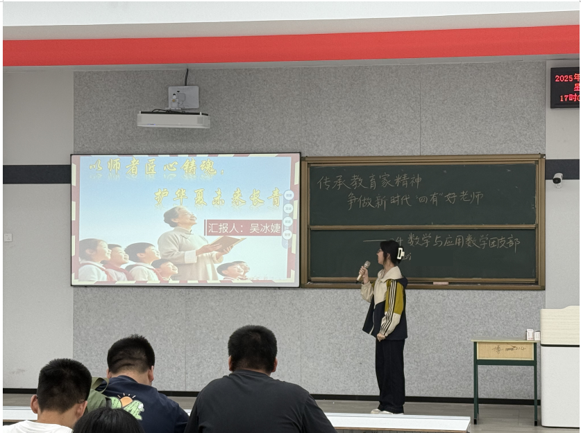 为宣传教育家精神,强化师范生职业认同感,5月19日,24级数学与应用数学联合团支部组织开展"传承教育家精神,争做新时代四有好教师"主题学习活动,带领24级数学师范专业同学深入学习教育家精神内涵。