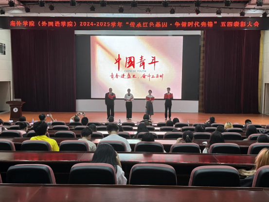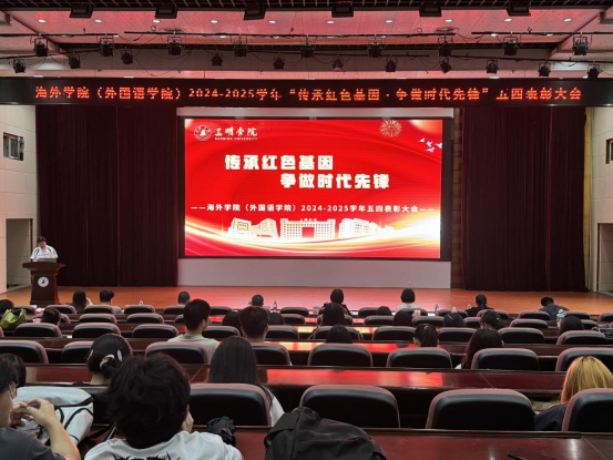 5月28日,海外学院(外国语学院)在行政附楼学术报告厅举行2024-2025学年“传承红色基因,争做时代先锋”五四表彰大会。海外学院(外国语学院)领导班子、各科室负责人和学生代表共同见证这场彰显青春力量、弘扬五四精神的盛会。