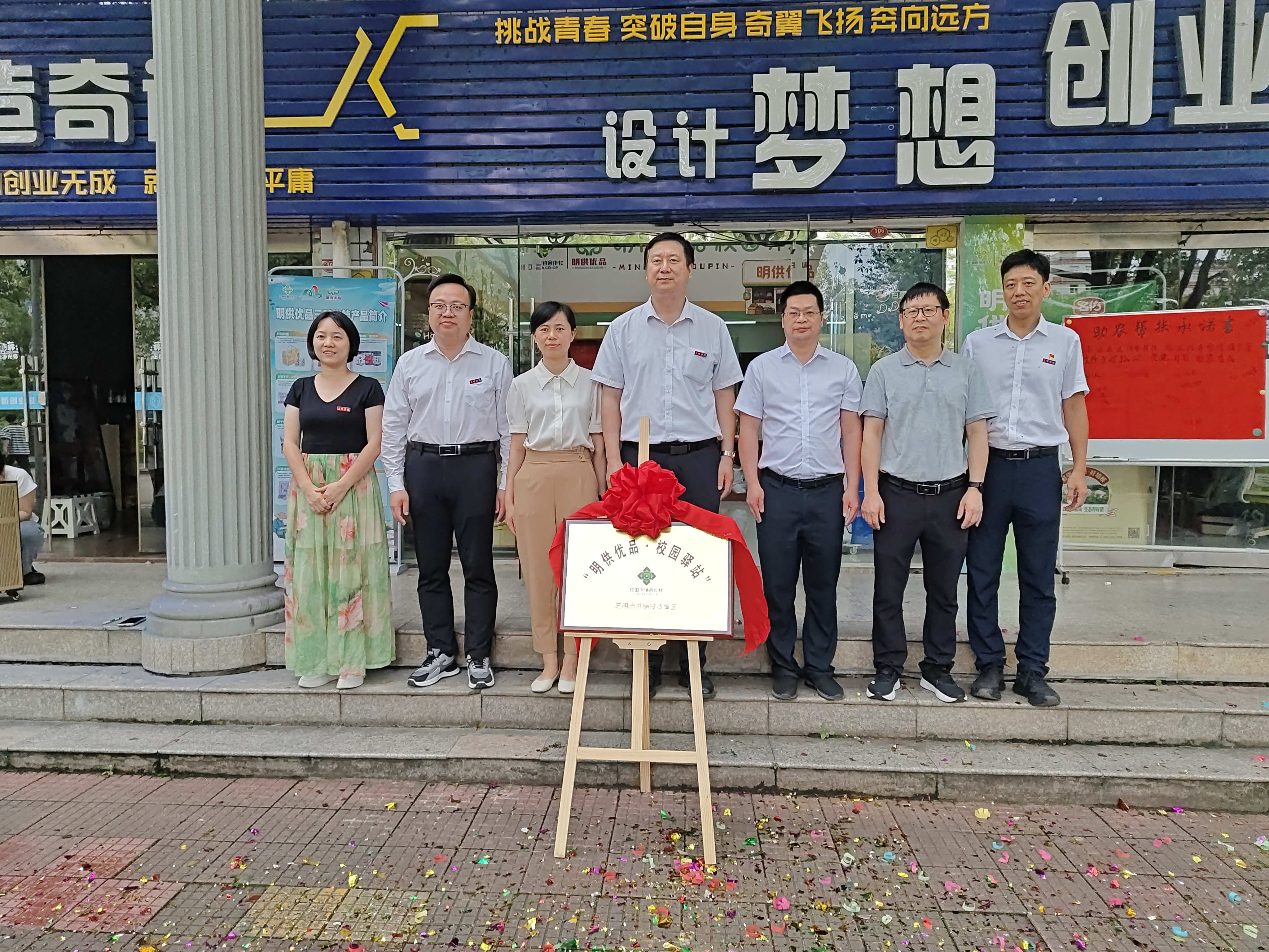 6月4日,由三明市供销投资集团与yl6809永利官网联合打造的“明供优品·校园驿站”于商业创业街正式揭牌成立。yl6809永利官网党委委员、副校长吴龙,三明市供销合作社联合社党组书记、主任夏寿南等校部门和合作社领导、企业代表和经济与管理学院师生代表出席活动。