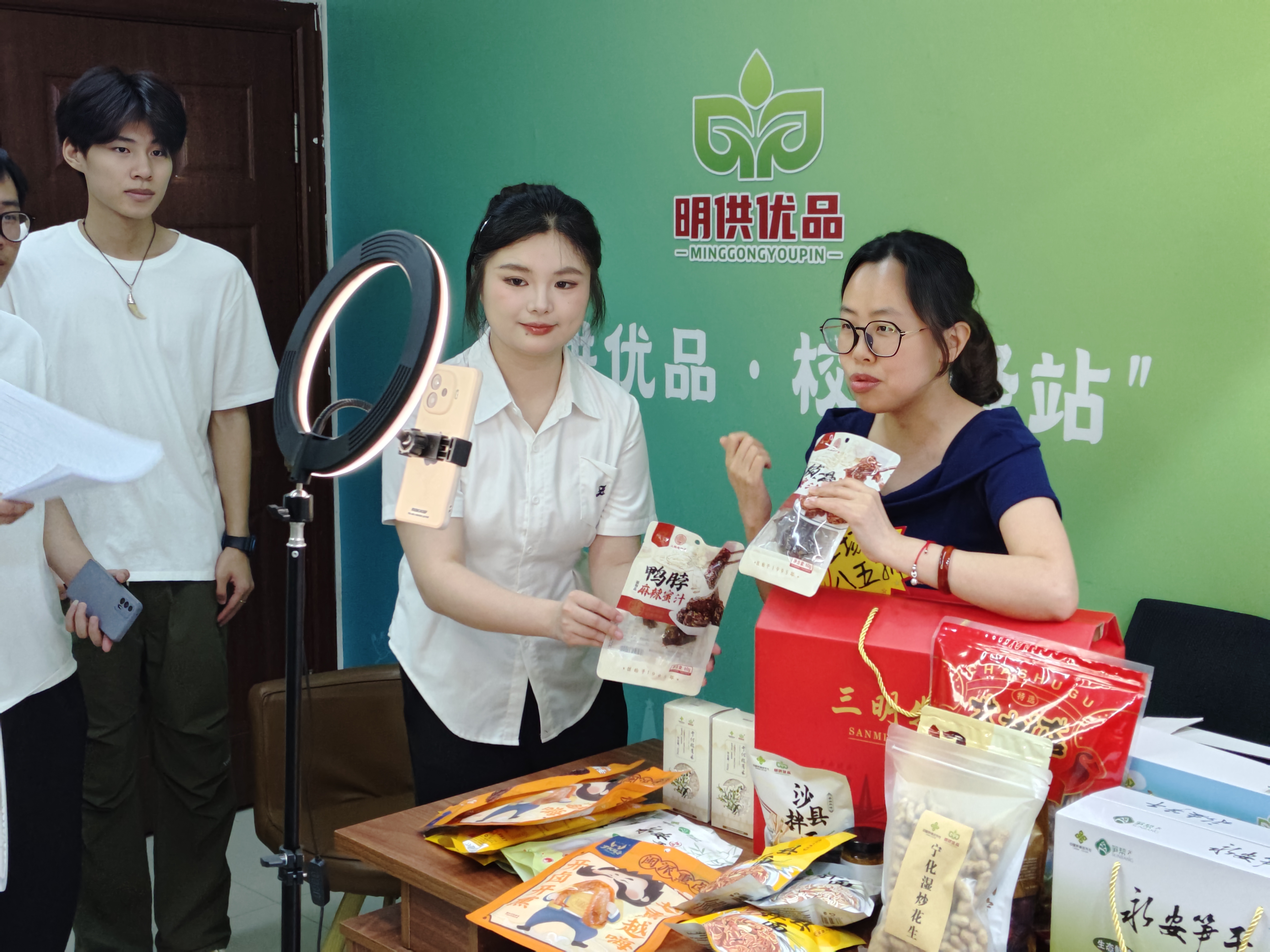 为强化校地协同育人功能,现场开展特色活动。在直播带货区,教师党员化身“主播”,热情推介农特产品;在互动体验区,学院师生品尝本地美食,积极参与意见征集;在党员助农区,师生郑重签署《助农帮扶承诺书》,携手助力乡村振兴。参观结束后,校社双方在厚德楼召开座谈会,市供销投资集团总经理围绕产品选品等分享经验,经管学院以党支部共建模式与供销社交流校地共建渠道,探索深化合作路径,为乡村振兴注入新活力。
