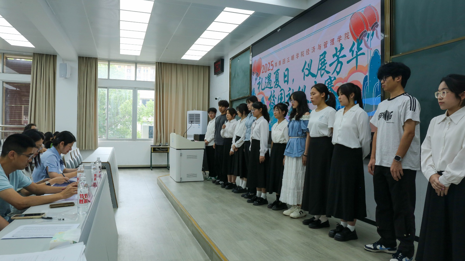 为深化新时代美育实践,传承中华礼仪文化精髓,提升学生文明礼仪素养,6月4日下午,由经济与管理学院承办的“礼遇夏日,仪展芳华”校园礼仪风采大赛于厚德楼圆满落幕。大赛启动以来,吸引了全校数百名学子积极参与,经过激烈的线上初赛选拔,25名选手凭借扎实的礼仪功底和出色的表现力成功晋级决赛。