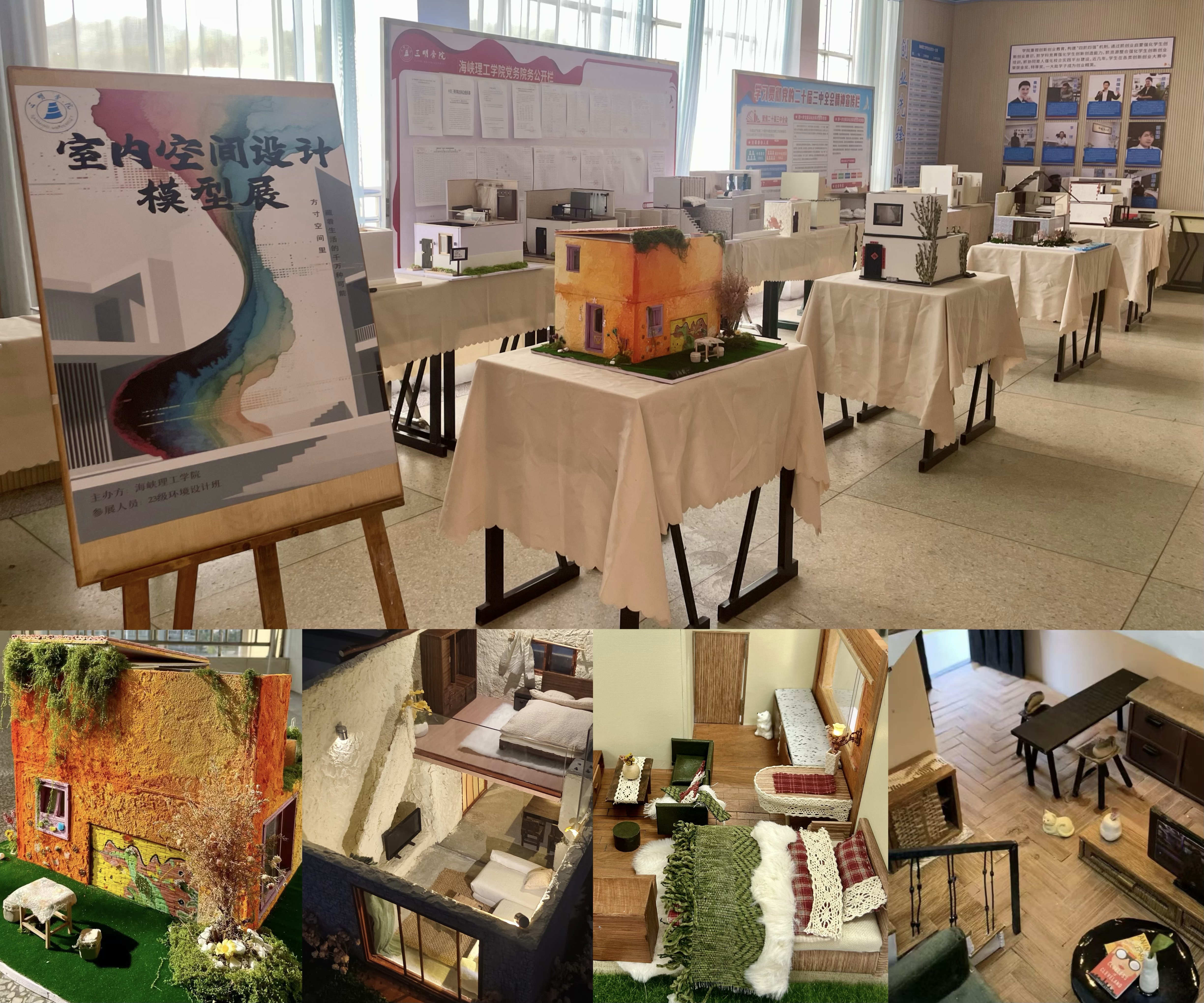 6月12日,海峡理工学院于致用楼4楼大厅举办室内空间设计模型作品展,26件融合创新理念与技术实践的模型作品充分展现了当代大学生对空间设计的多元思考,为校园文化注入了浓郁的艺术气息。