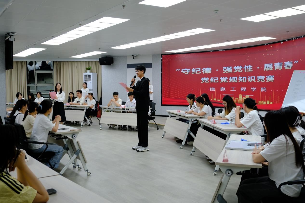 为深入贯彻中央八项规定精神学习教育,提升青年党员党纪理论知识水平与纪律意识,6月11日晚,信息工程学院“守纪律·强党性·展青春”党纪党规知识竞赛拉开帷幕。六支代表队同台竞技,以知识为刃、以纪律为尺,展开了一场党性修养与青春风采的精彩碰撞。