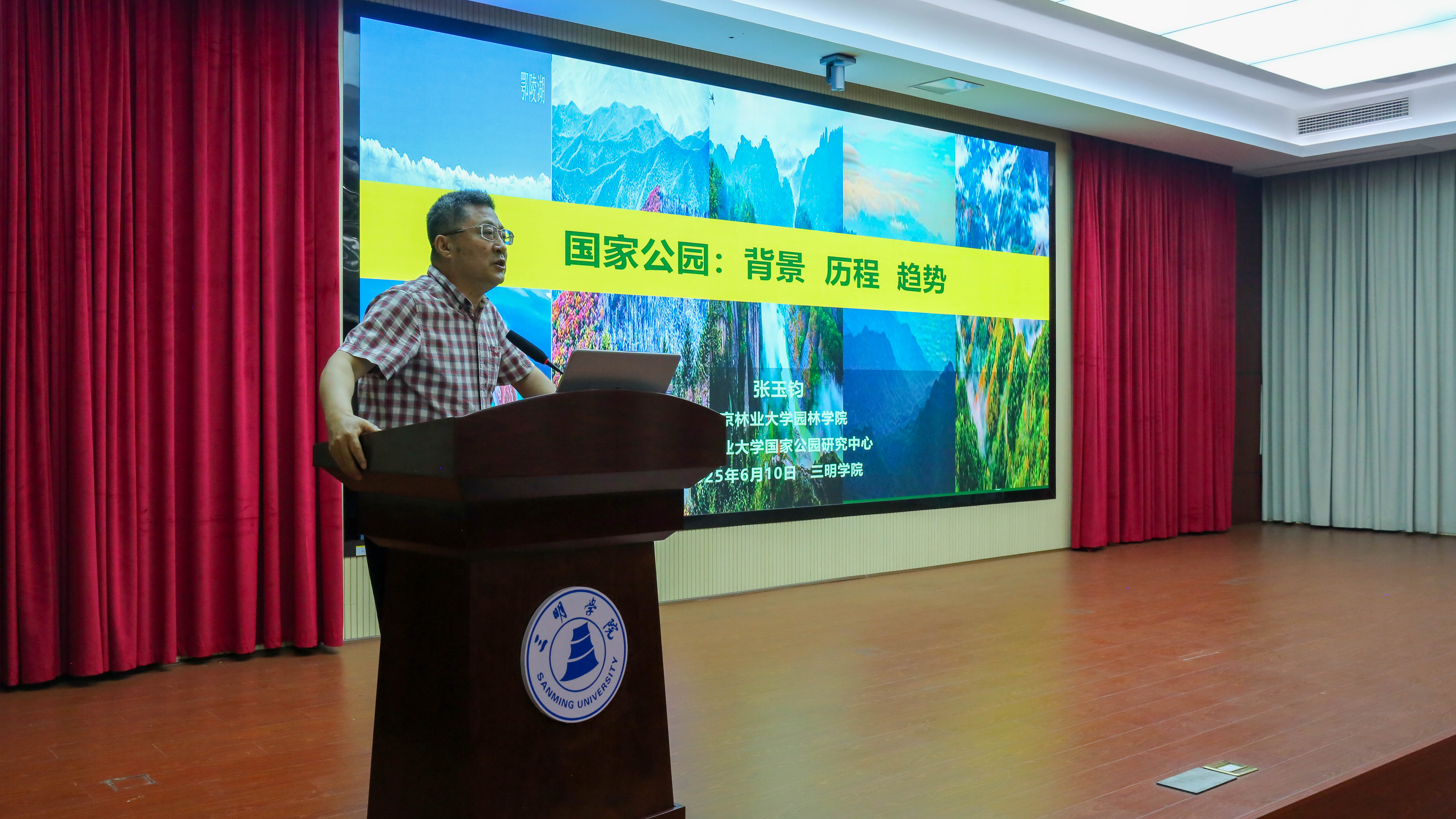北京林业大学国家公园研究中心主任、博士生导师张玉钧教授受邀开展《国家公园:背景、历程、趋势》主题讲座。张玉钧教授回顾我国国家公园从早期探索到试点建设的历程,对比各国国家公园发展经验及 IUCN 保护地体系,深入解析我国“以国家公园为主体的自然保护地体系”的定位、整合路径与空间布局,并围绕国家公园管理体制、社区协调及可持续发展等关键问题展开探讨。