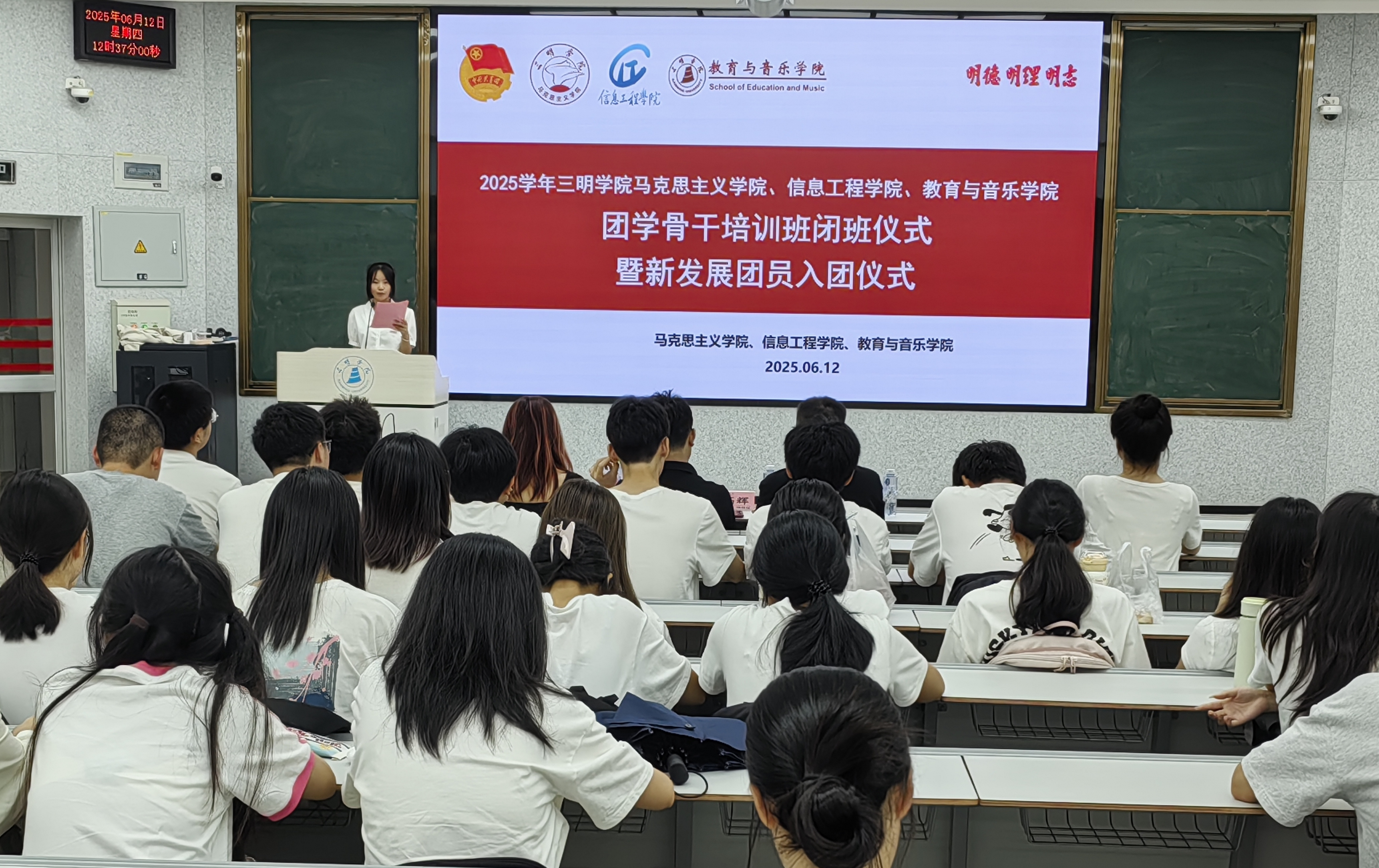 6月12日,信息工程学院、马克思主义学院、教育与音乐学院“大学生骨干”培训班结业仪式暨新发展团员入团仪式在博学楼223举行,三个学院团委负责人及全体学员参加了活动。