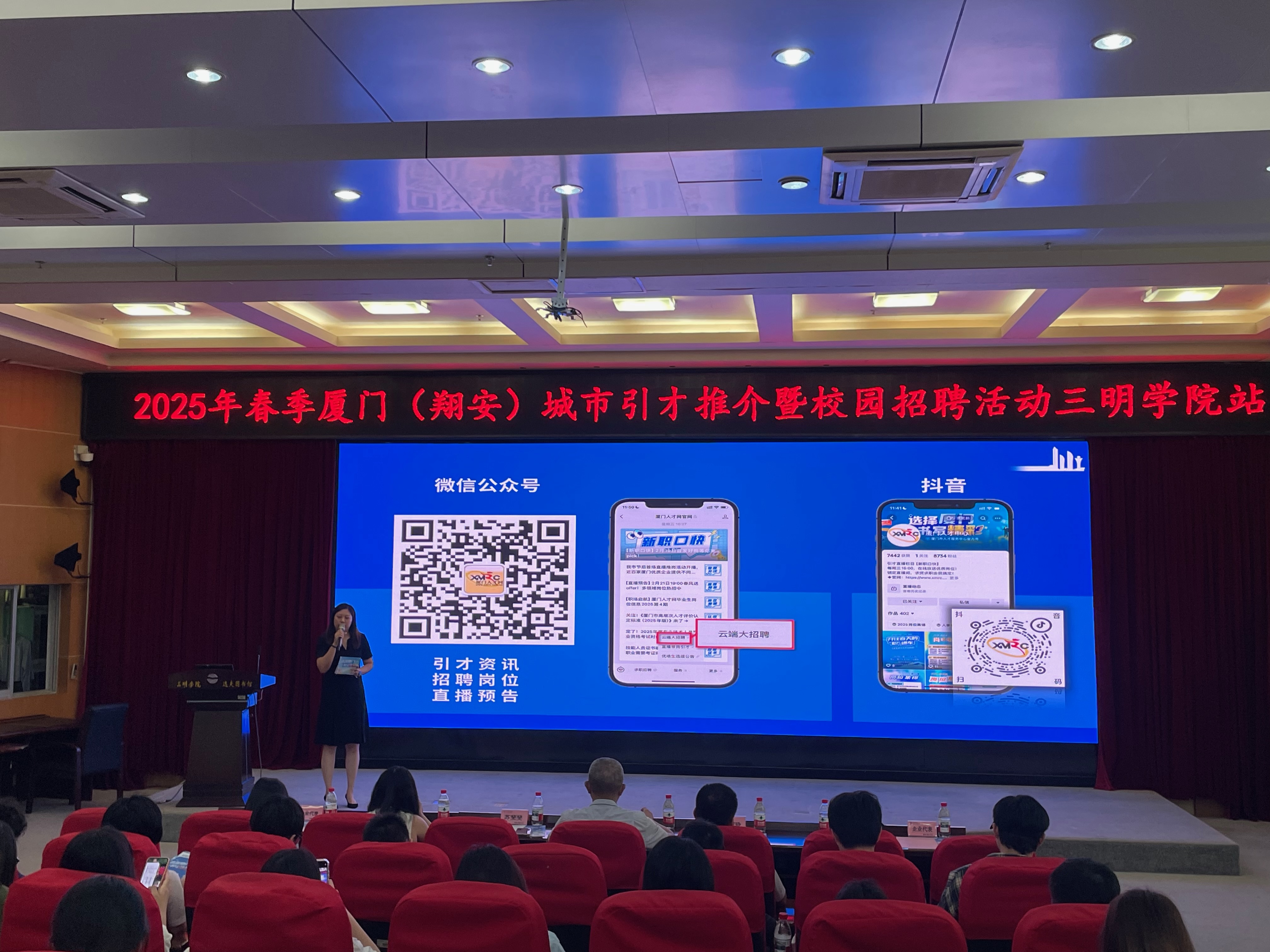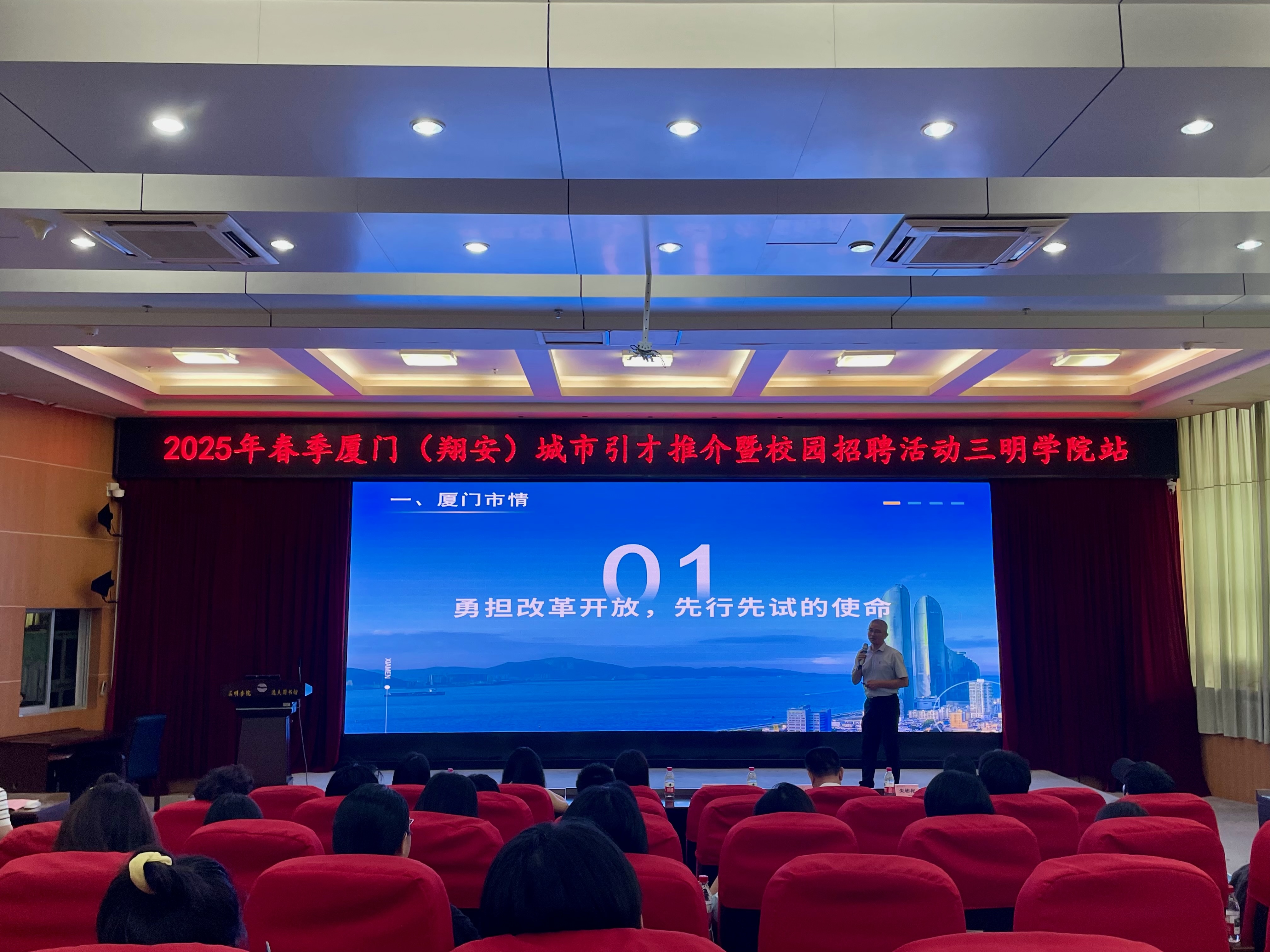 6月18日,“选择厦门·书写精彩”2025春季厦门城市引才推介会在三明学院图书馆学术报告厅举行。