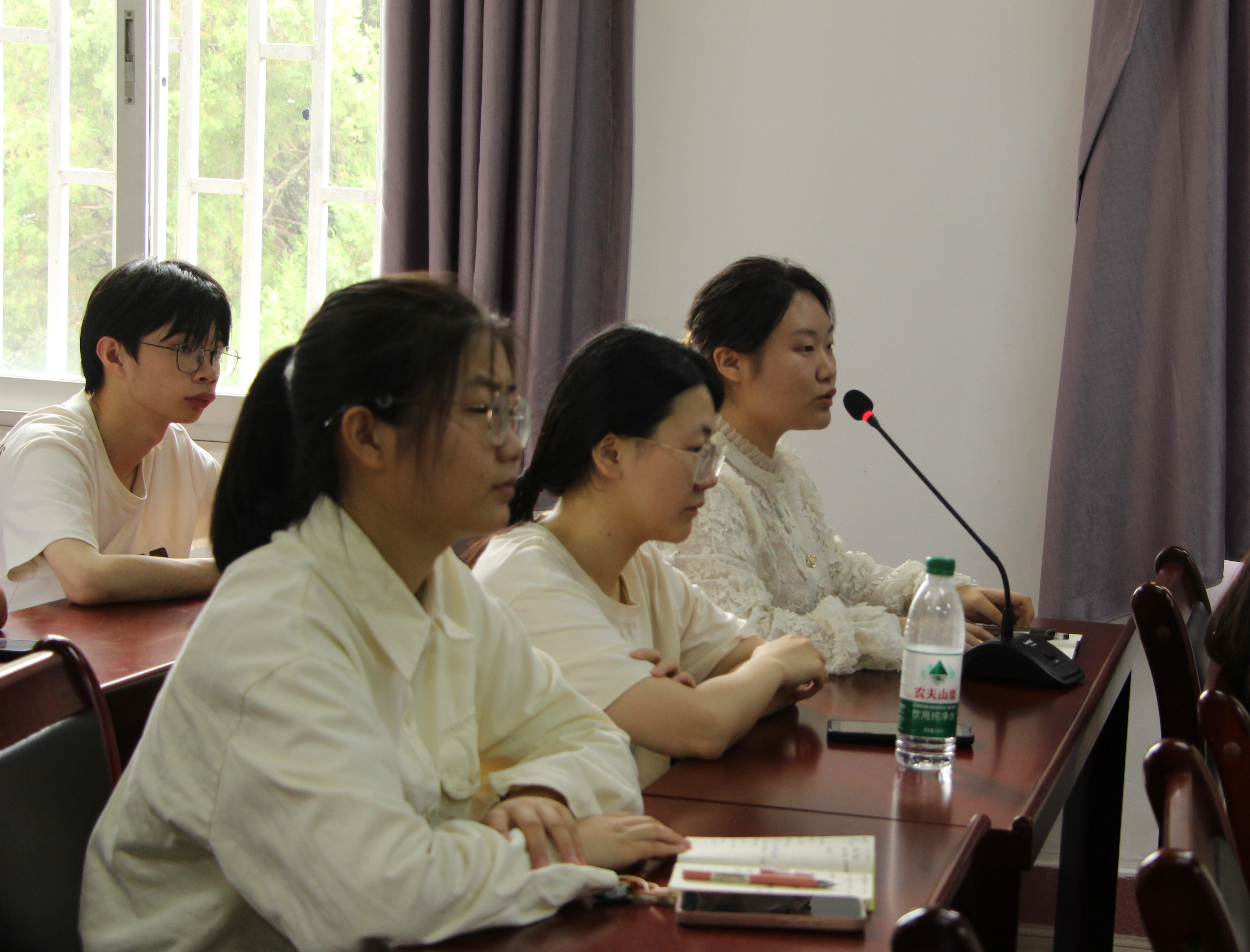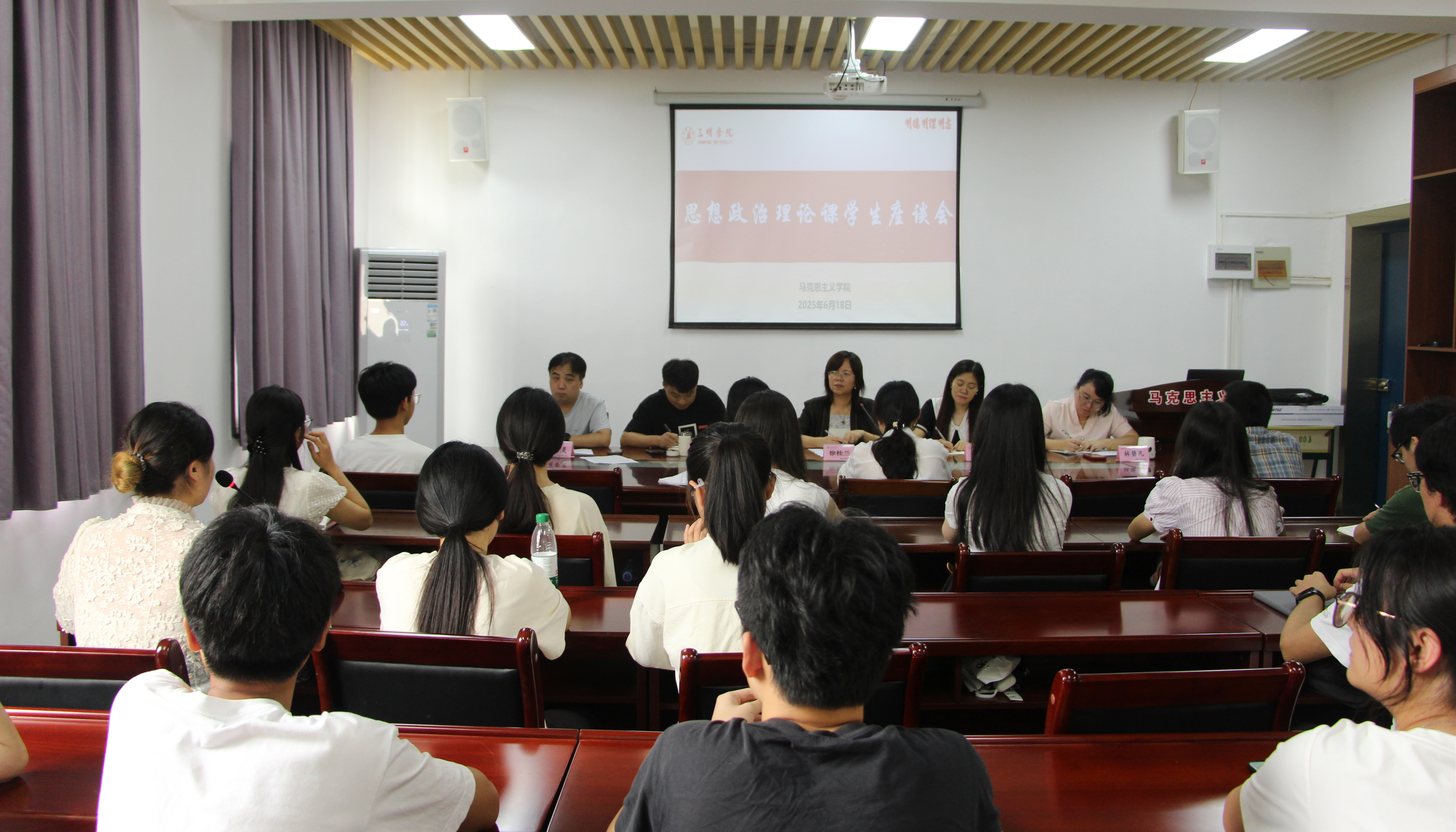 为深入贯彻落实习近平总书记对学校思政课建设作出的重要指示精神,落实立德树人根本任务,推动我校思政课教学质量持续提升,6月18日中午,马克思主义学院在明德楼(二)306会议室召开思想政治理论课师生座谈会。分管教学副院长、教研室主任、教学秘书及学生代表参加座谈会。