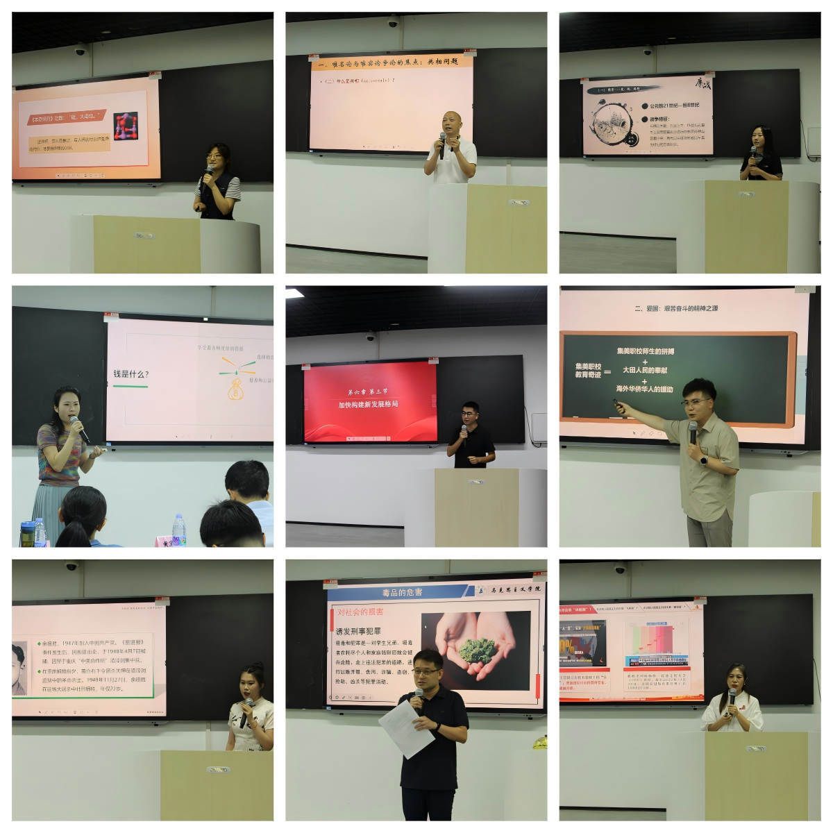 在教学比武环节,青年教师王艳娜、罗斯怡、邓然、李霞等依次登台,分别围绕“辩证唯物主义认识论”“领悟人生真谛 把握人生方向”“抗日战争胜利的原因”以及“如何理解发展全过程人民民主?”等主题进行了精彩的教学展示。参赛教师们声情并茂,巧妙地将理论知识与现实案例相结合,呈现出富有创意、深入思考且内涵丰富的课堂风采。