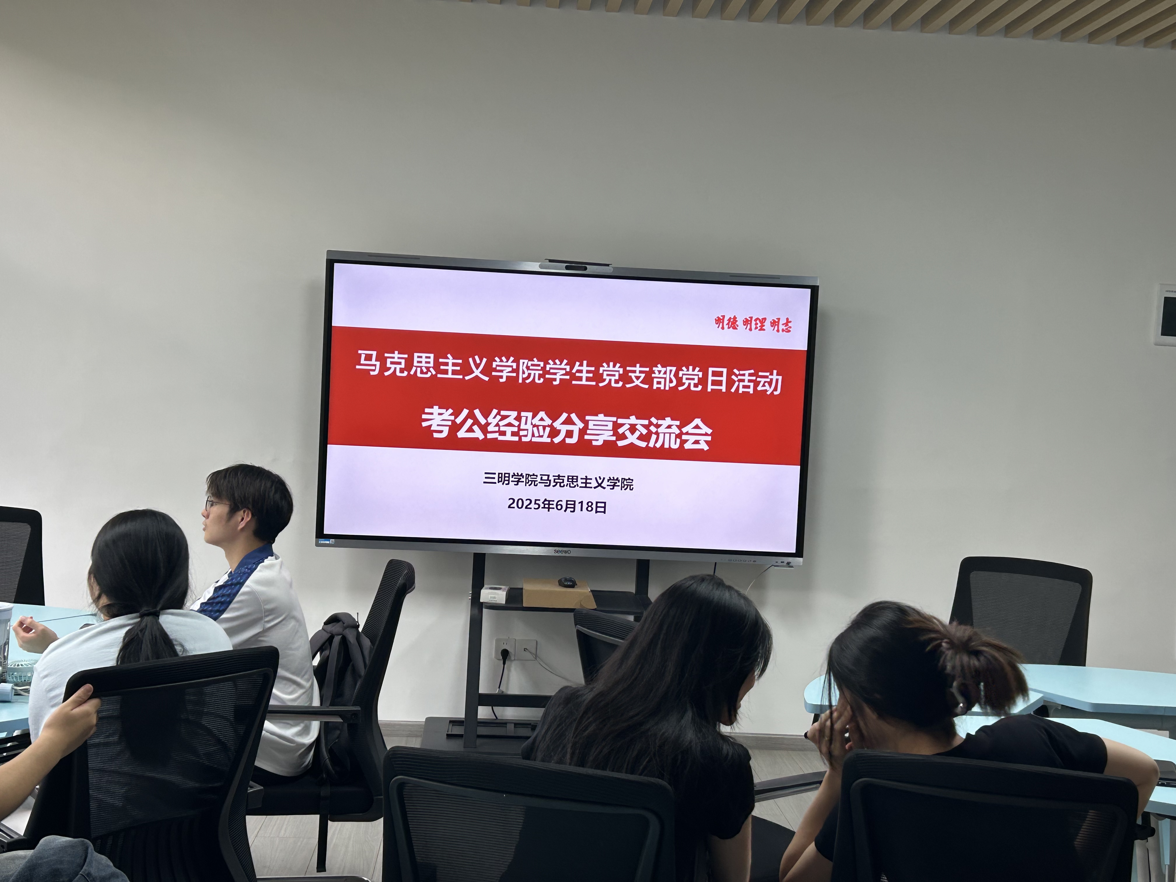 2025年6月18日下午,马克思主义学院学生党支部在明德楼201教室举办“考公经验交流分享”主题党日活动,支部全体党员、22级和23级学生参与活动。