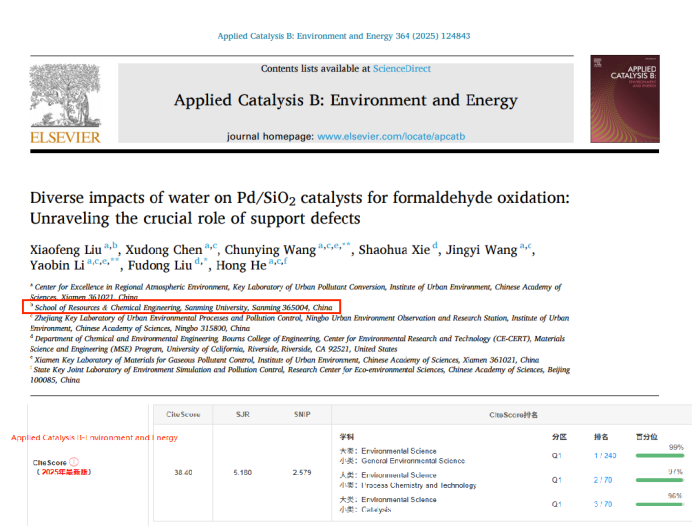 作者简介:刘晓峰,2023届科研引进生,资源环境系主任/资源环境科学专业带头人,主要研究方向为环境催化与氟新材料开发。来校后,以yl6809永利官网第一单位发表A1类论文4篇(Coordin. Chem. Rev.(1篇),J. Environ. Sci.(2篇),化工进展(1篇))。以第一作者,yl6809永利官网第二单位发表催化领域顶级期刊论文1篇(Appl. Catal. B: Environ. Energy,中科院1区top,IF:21.1)。以yl6809永利官网为合作单位发表共发表A类论文5篇,其中A1类论文3篇(Appl. Catal. B: Environ. Energy(2篇),J. Colloid Interf. Sci.(1篇),A2类论文2篇(Inorg. Chem.(1篇) J. Phycol.(1篇))。以上论文总被引12次,有助于提升学校科研成果影响力,提升环境和化学学科ESI排名,为学校资源与环境、材料与化工学科建设提供有力支撑。