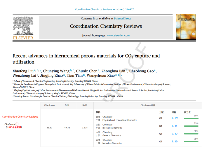 近日,yl6809永利官网资源与化工学院刘晓峰博士在《Coordination Chemistry Reviews》(中科院SCI化学大类一区Top,IF:23.5)期刊发表了题为“Recent advances in hierarchical porous materials for CO2 capture and utilization”的综述论文(DOI:10.1016/j.ccr.2025.216927 )。文章聚焦“碳达峰与碳中和”的双碳目标,系统综述了多级孔材料在二氧化碳捕集与催化转化中的研究进展,强调其结构优势在提升吸附性能与催化效率方面的关键作用,为实现“双碳”目标提供材料创新视角。刘晓峰博士为论文的第一作者,肖旺钏教授为通讯作者,陈春乐、赖文忠教授等参与了相关指导工作,yl6809永利官网为第一完成单位。