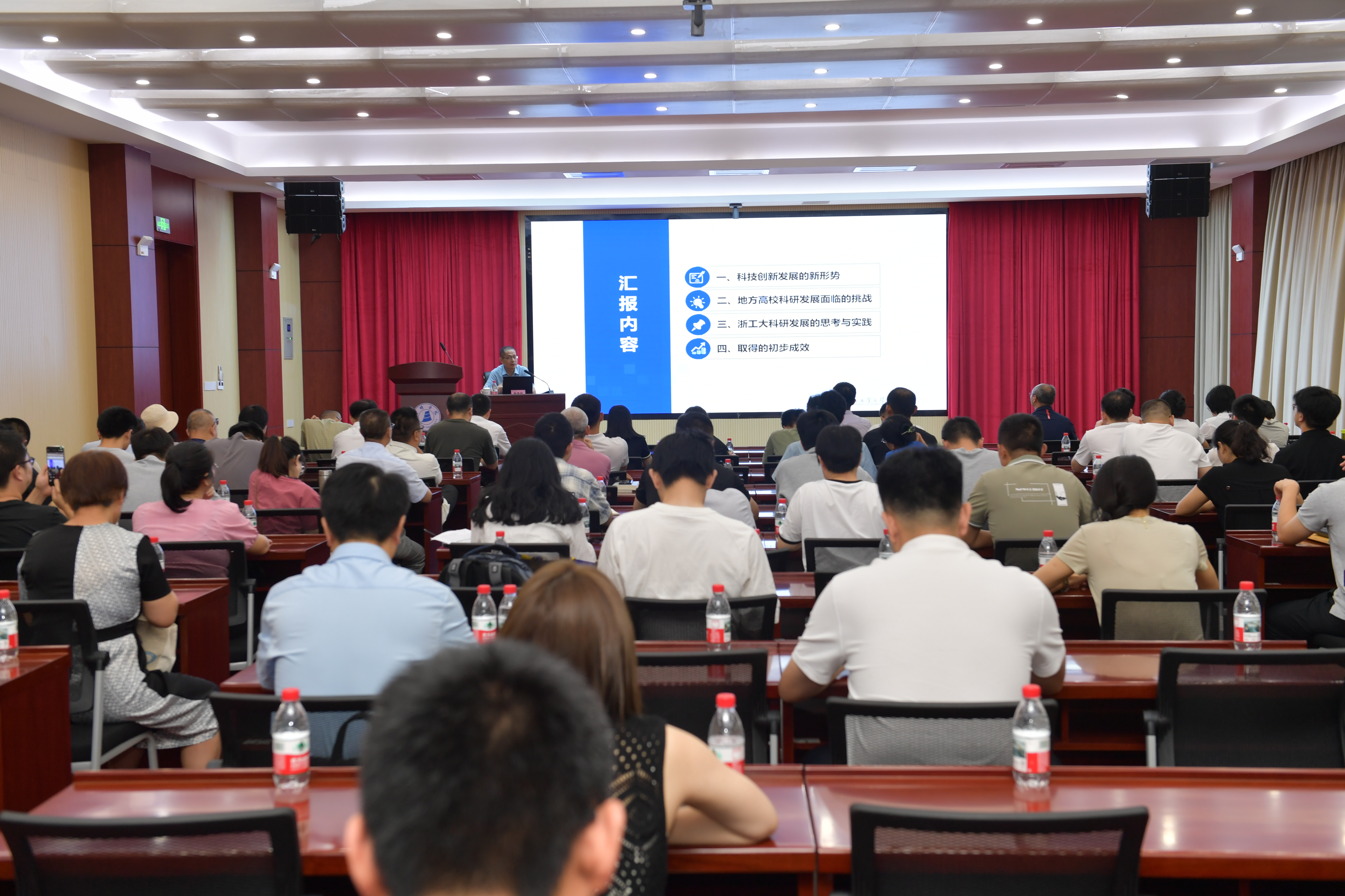 7月4日,我校邀请浙江工业大学副校长、二级教授、博士生导师郑华均作“做有组织的科研——探索地方高校科研发展之路”专题讲座。副校长陈日清主持报告会,各二级学院领导、学科专业及平台负责人、博士教师代表、科研秘书等参加学习。