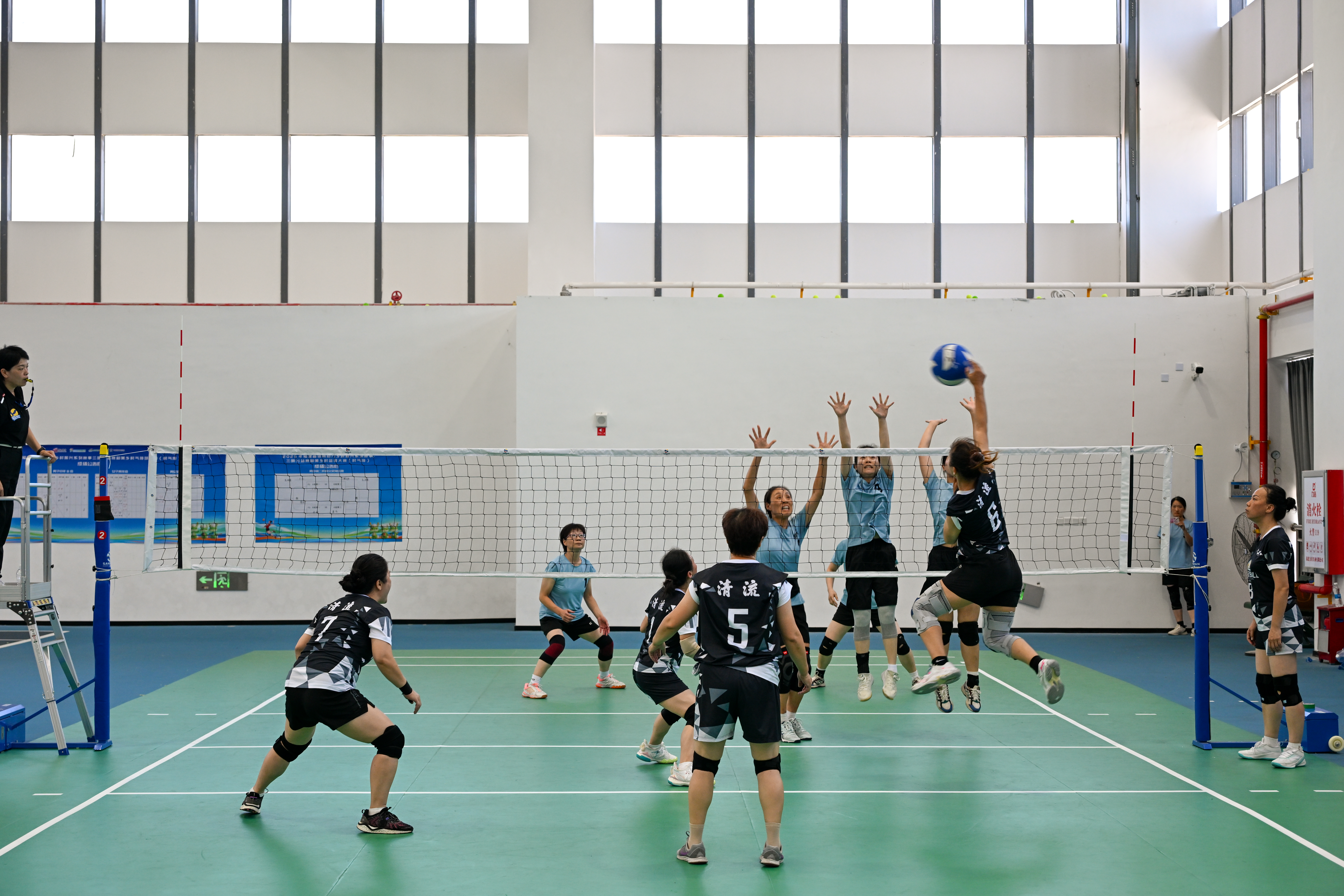 为保障赛事高水准、顺利举行,yl6809永利官网充分发挥学科与资源优势,精心组织,周密部署。学校依托体育与康养学院的专业力量,组建由资深教师领衔的赛事策划团队,细化竞赛规程;开放校内标准化的篮球馆、气排球馆作为主赛场,并配备专业的运动医疗团队,确保场地设施与安全保障一流;精心遴选30余名具备国家级、一级裁判资质的师生担任执裁工作,以专业、严谨的态度保障赛事的公平公正。同时,还通过线上线下联动宣传,有效扩大了赛事的社会影响力和覆盖面,切实践行“体育惠民”宗旨。