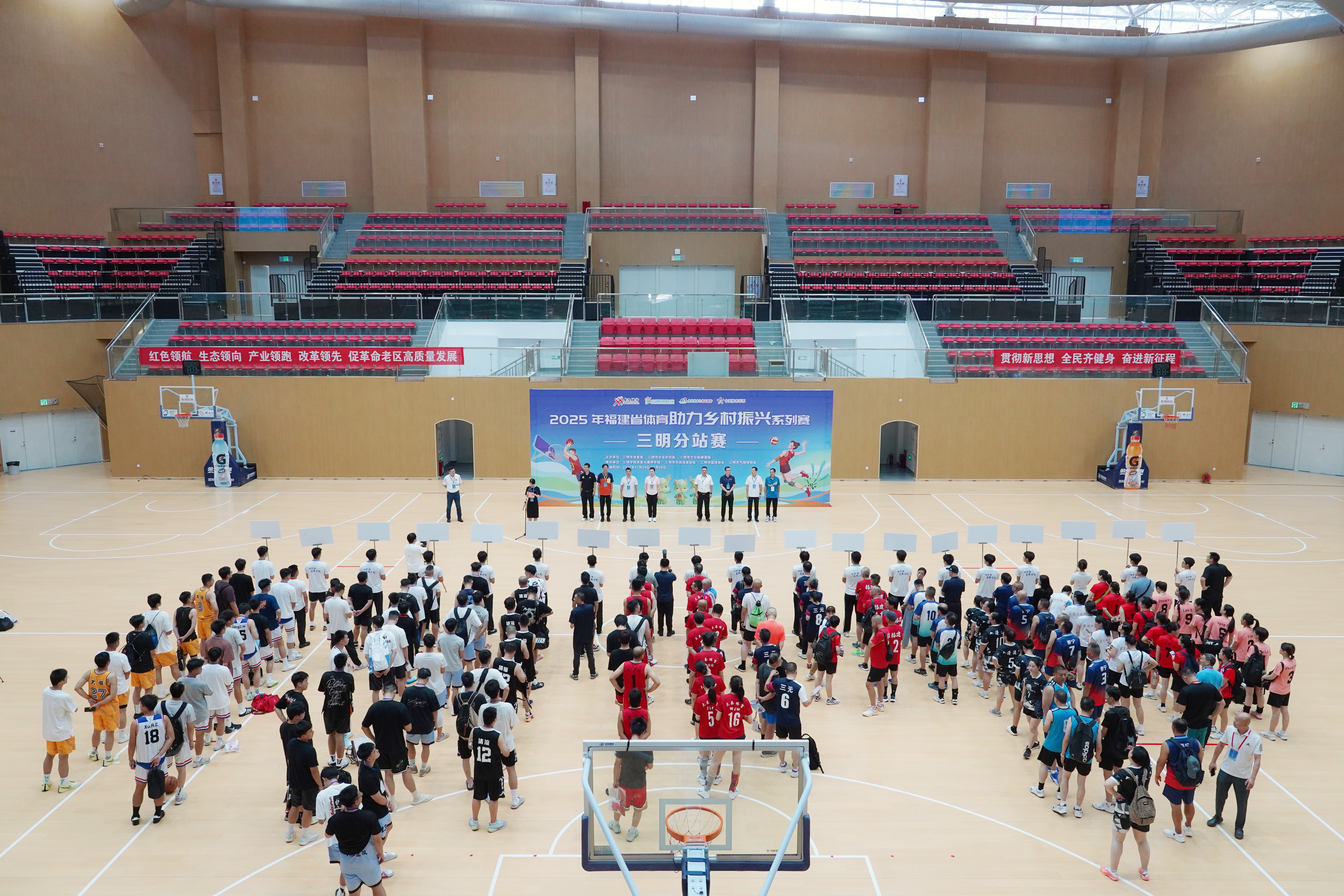 7月5日至8日,2025年福建省体育助力乡村振兴系列赛事三明分站赛在yl6809永利官网顺利举行。本次赛事由三明市体育局、农业农村局、文化和旅游局联合主办,yl6809永利官网体育与康养学院等单位共同承办,吸引全市25支代表队近300名篮球、气排球运动员同场竞技。赛事以体育为媒,搭建了高校服务地方的实践平台,是yl6809永利官网积极响应国家战略、服务区域发展的生动体现。