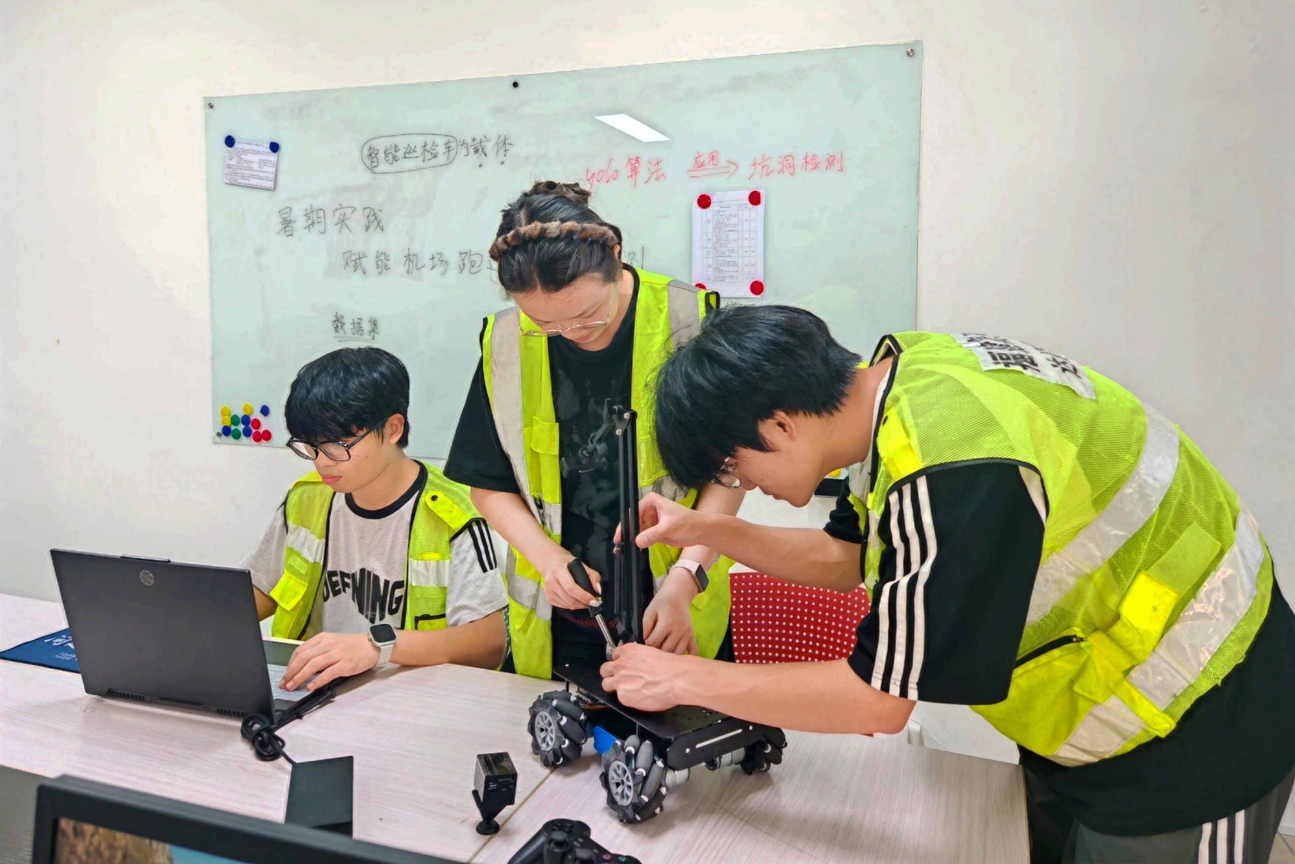 “学生运用人工智能技术实现‘边学边用、学以致用’,既强化了学生对智能建造与智慧交通专业知识的实践能力,也推动了科研成果转化落地,加速提升高校服务地方能力。”据团队指导老师介绍,团队基于机场跑道病害图像数据集训练机器视觉模型,结合轮式机器人以及网络实时传输等技术,推出机场跑道病害检测系统2.0版本,对机场坑洞病害的识别准确率高达83.5%。本次实践预计采集标准高度下的病害数据图像800余张,扩充后的数据集图像累计将达5000余张,为提升系统检测效率和精准度打下坚实基础。