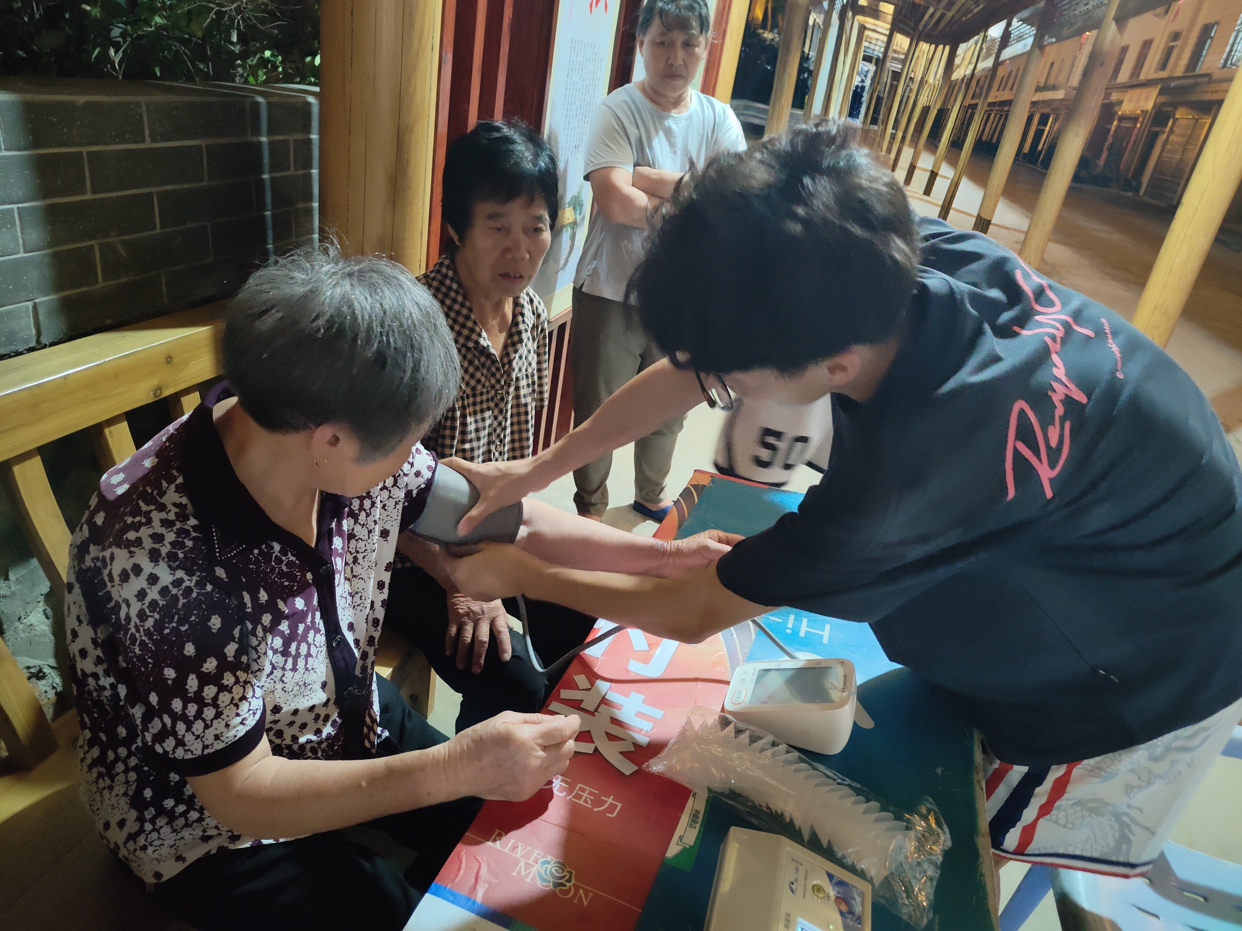 傍晚时分,实践队化身“健康使者”,在集市、农户家中开设科学健身课堂,并为村民提供体质测试服务。通过检测血压、握力、肺活量等指标,团队量身定制健身方案,推广八段锦、太极拳等适宜乡村的锻炼方式,并手把手教村民如何康养按摩。村民陈大爷体验后笑道:“原来科学锻炼有这么多讲究,以后要跟着专家好好练!”