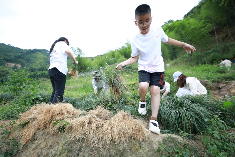 志愿者和孩子们体会到丰收的喜悦,越干越勇。很快,热汗顺着他们的额头淌落下来。一边,不知不觉间收获的麦冬已经堆成了小山。看着劳动所得,志愿者和孩子们似乎闻到了混着有机肥的麦冬清香,纷纷击掌庆祝,还不忘和自己的劳动成果合影留念。