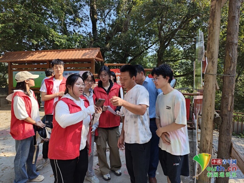图为实践队员在现场与村书记探讨设计方案。杨应龙 供图