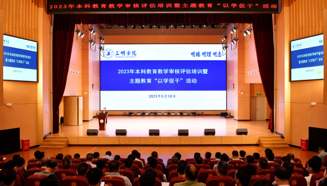 5月10日,yl6809永利官网2023年本科教育教学审核评估培训暨主题教育“以学促干”活动艺术楼音乐厅举办全体在家校领导出席培训会