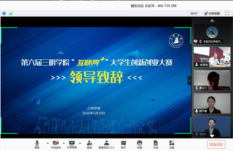 廖副书记在致辞中肯定了三创工作取得的优良成绩,在大家的努力下,学校荣登“2019·中国大学创业竞争力500强”排行榜;通过“互联网+”大赛这个平台,培育了一批种子项目,孵化了一批极具yl6809永利官网特色的“三创”企业;在上一年“互联网+”创新创业大赛中我校取得国赛1银2铜,省赛2金1银的好成绩。他指出“互联网+”大学生创新创业大赛已经成为我校规模最大、形式最新、最为生动的思政大课堂和深化创新创业教育改革、促进学生全面发展的重要平台,在当前疫情防控进入常态化的情况下,大赛采用网络路演这一创新的形式进行。希望全体参赛同学主动适应新形势,认真备赛、参赛,尽情放飞青春梦想,为校争光。