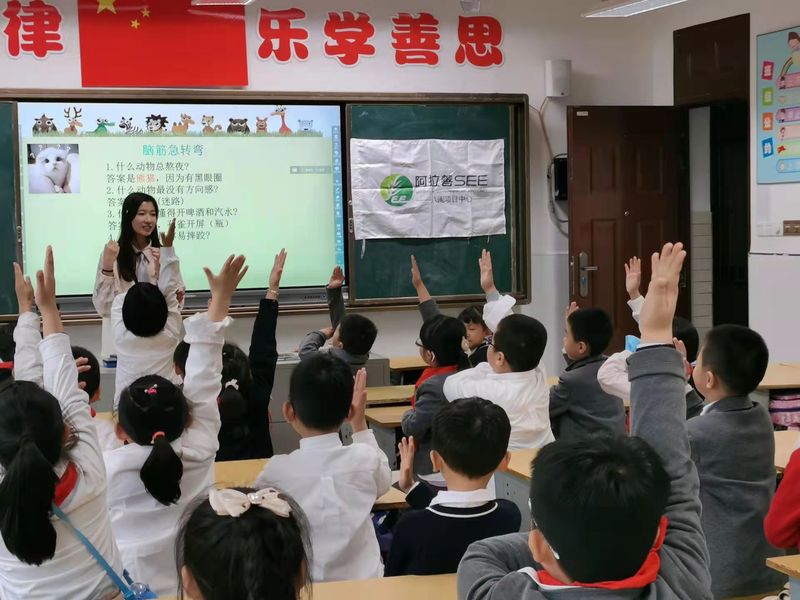 公益讲师吕慧灵通过互动问答、视频观看、游戏体验等方式,让小朋友们了解生态万物,带领同学们走进动物世界,探索新的秘密。全体同学兴味盎然,讲坛氛围十分活跃。