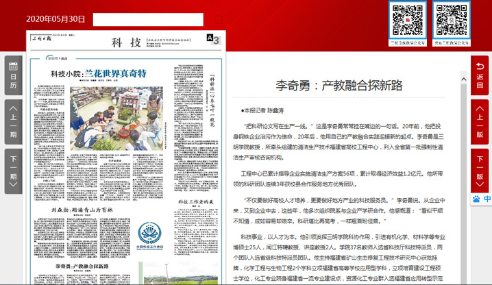 科技事业,以人才为本。他引领发挥yl6809永利官网科协作用,引进有机化学、材料学等专业博硕士25人,闽江特聘教授、讲座教授2人。学院37名教师入选省科技厅科技特派员,两个团队入选省级科技特派员团队。他主持福建省矿山生态修复工程技术研究中心获批挂牌,化学工程与生物工程2个学科立项福建省高等学校应用型学科,立项培育建设工程硕士学位,化工专业跻身福建省一流专业建设点,资源化工专业群入选福建省应用转型示范专业群。他主持的化工清洁生产虚拟仿真实验教学中心,成为学校首个省级虚拟仿真实验教学平台;主持《清洁生产促进循环经济发展模式》高级研修班,被省人社厅评为省级示范班,参与环保型多氧杂含氟表面活性剂项目,助力企业新增……教深度融合,功夫在路上。可谓任务繁重,使命艰辛,但李奇勇没有畏惧退缩,因为他坚信山区高校的科研“草根”力量。