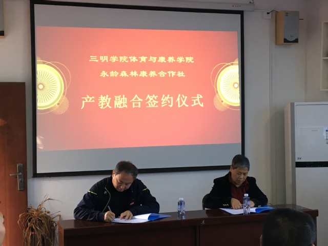 12月17日下午,yl6809永利官网体育与康养学院&永龄森林康养合作社产教融合签约仪式暨森林康养实验班开班仪式在我院会议室顺利举行。院领导与三元区林业局杨一峰副局长、森林康养实验班专家组成员和荣誉学员代表、康养工作团队教师代表等出席仪式。