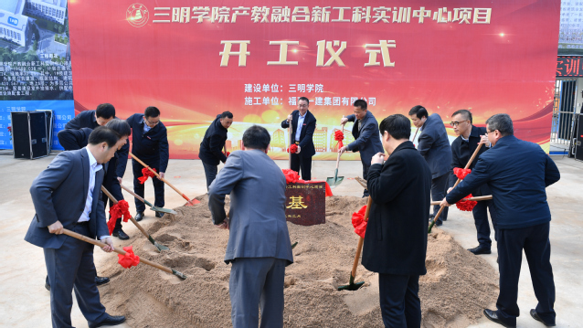 在欢快喜庆的礼炮声中,在场领导和嘉宾共同参加新工科实训中心项目扬锹仪式,共同见证学校发展的关键时刻。