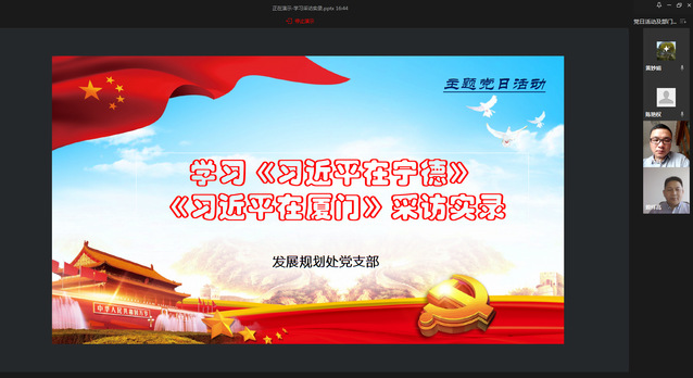 为深入学习习近平新时代中国特色社会主义思想,感悟习近平总书记在宁德和厦门工作的生动实践,发展规划处党支部于4月30日开展以“学实录悟真理 守初心践使命”为主题的线上党日活动。