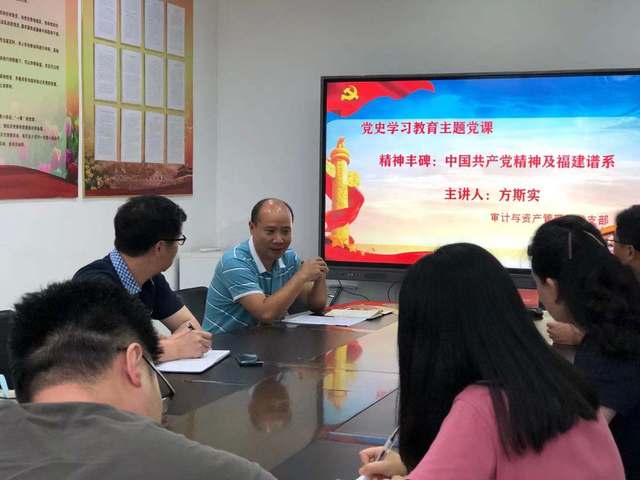 按照学校党史学习教育安排,6月30日,方斯实书记为审计与资产管理处党支部全体党员干部讲授《精神丰碑:中国共产党人精神及福建谱系》专题党课,深入推动学史明理、学史增信、学史崇德、学史力行。