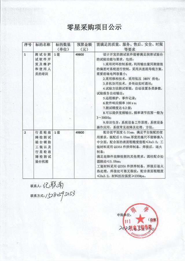 2022年5月13日零星采购项目公示