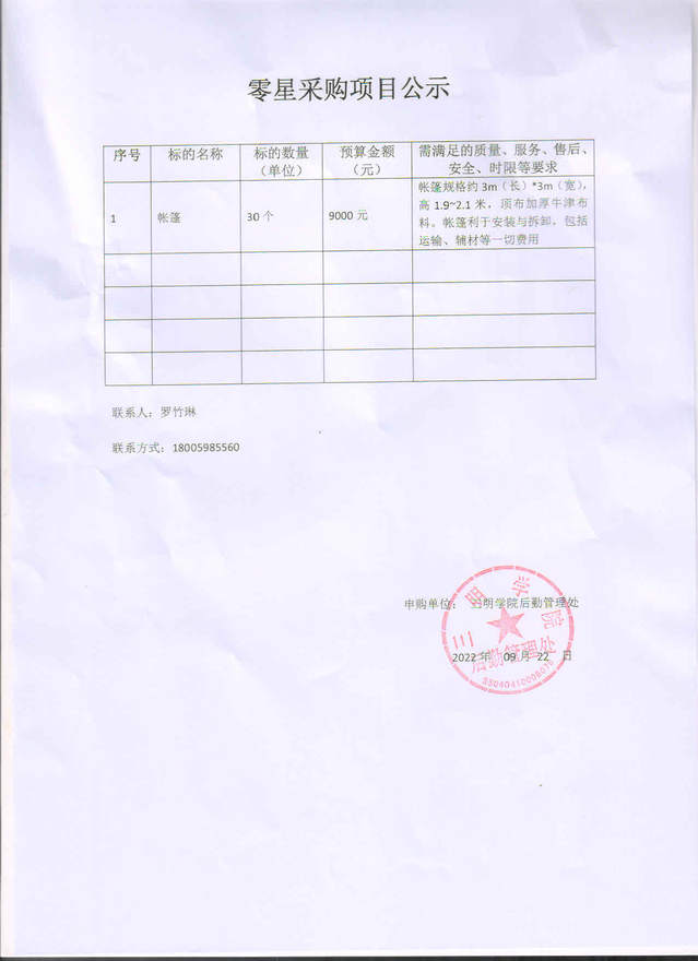 2022.9.22零星采购项目公示
