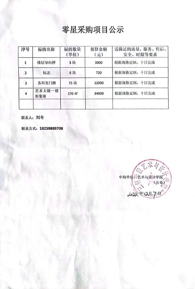2022.12.7零星采购项目公示