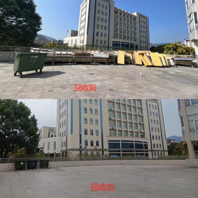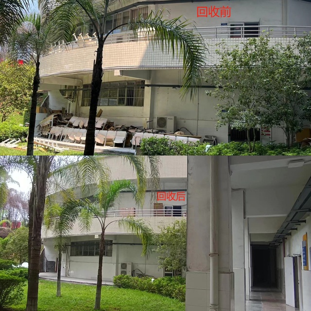 回收工作按照轻重缓急有序进行,首先处理可能影响教学办公的占道物资,其次对各二级单位上报的处置资产进行清理,其中包括机电工程学院、信息工程学院的大型仪器设备,教音、艺术、海外、文传等学院的教学办公设备,网络中心的废旧交换机、服务器等以及学生公寓损坏的课桌椅。