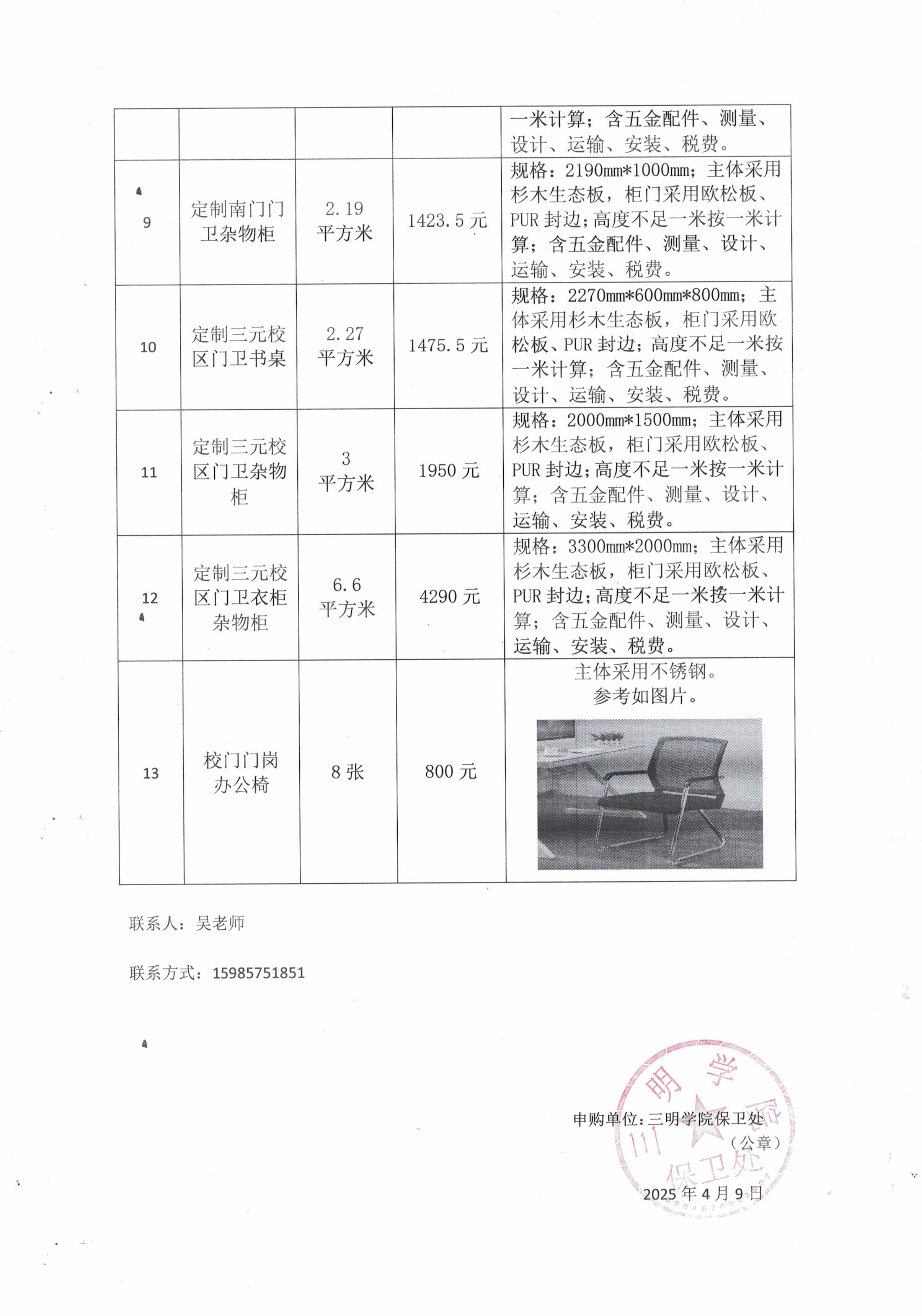 2025.04.09保卫处门卫家具定制2