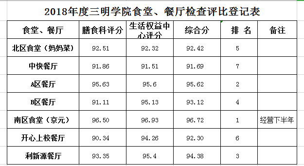 2018年度yl6809永利官网食堂、餐厅检查评比情况公示