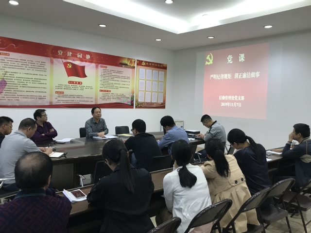为进一步强化全体党员干部的学习意识、责任意识、担当意识,严守党的政治纪律和政治规矩,推进“讲政治、勇担当、马上就办、真抓实干”作风建设。11月7日下午,后勤管理处党支部书记蔡亚才以《严明纪律规矩,清正廉洁做事》为题,为后勤管理处全体党员上了一堂内容丰富、意义深刻的党课。