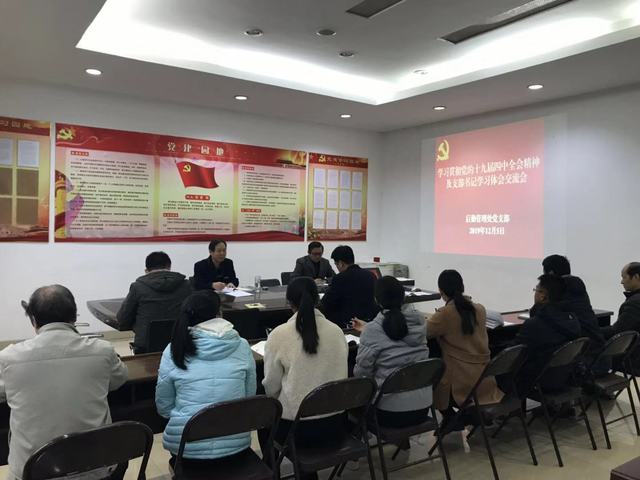 按照学校主题教育学习部署,12月5日下午,后勤管理处党支部组织开展学习贯彻党的十九届四中全会精神和支部书记学习体会交流会,会议由支部书记蔡亚才同志主持。