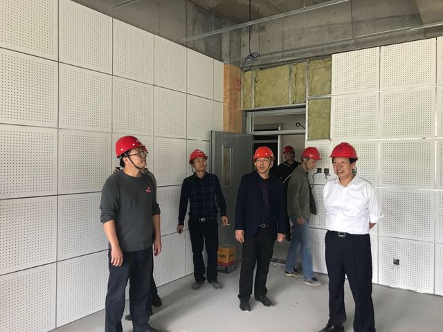 在艺术综合楼项目建设现场,谢副校长认真听取了后勤处及施工单位关于项目建设进展情况的汇报,实地察看大楼室内外施工建设进度,询问工期安排及亟须协调解决的问题,并现场予以协调落实。