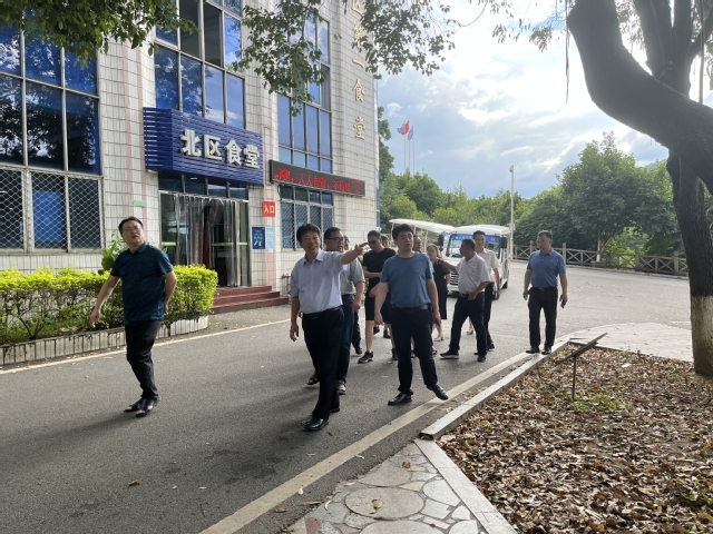 本次检查首先来到北区食堂,针对北区食堂入口处道路较窄,机动车与行人共用“一道”,上下课高峰期道路拥挤等情况,进行了现场研判。谢松明副校长现场作出指示,要结合实际情况开展道路改造工程,消除交通安全隐患。