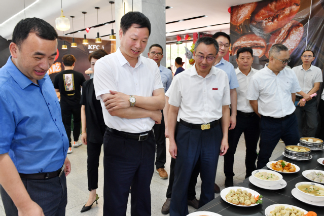 在欢快喜庆的礼炮声中,在场领导和嘉宾代表共同为沙县小吃yl6809永利官网旗舰店举行揭牌典礼。典礼结束后,领导一行对旗舰店进行参观指导。