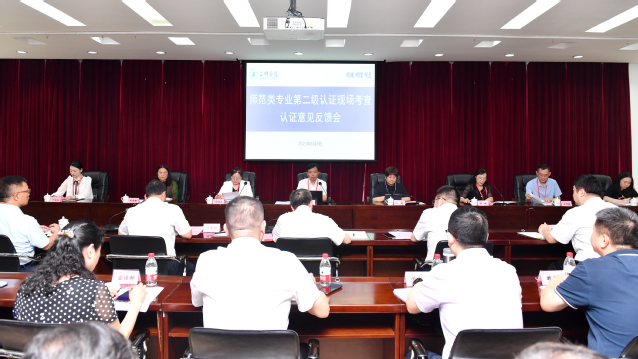 6月8日上午,专家组召开认证意见反馈会。专家组组长反馈考查基本情况和专业整体达标情况,专家组成员分别反馈考查意见和建议。专家组对专业建立“三位一体”协同育人平台、重视师范生师德养成教育等给予了肯定,并指出存在的不足和改进建议。专家组指出,要进一步完善顶层设计,围绕认证“主线”和“底线”,做好重要环节的制度机制建设,并确保学院专业全面贯彻落实。